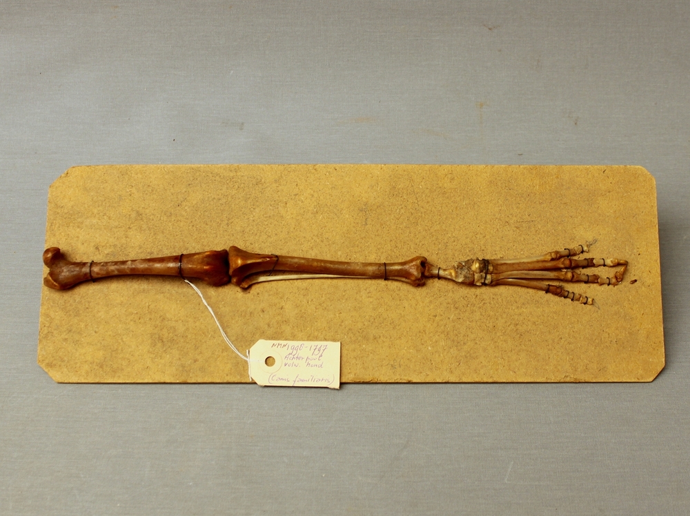 Hond; skelet achterpoot; op strokarton
