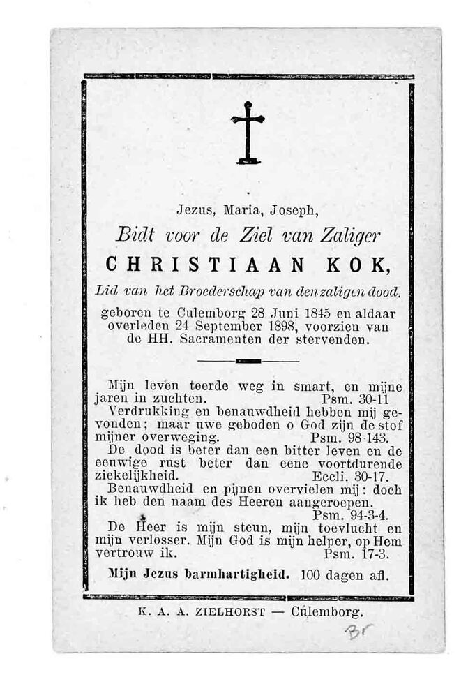 bidprent voor Christiaan Kok. Geboren 28-06-1845 te ...