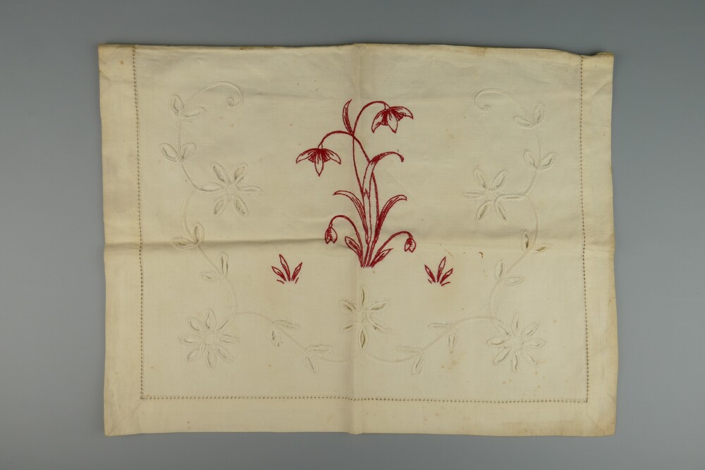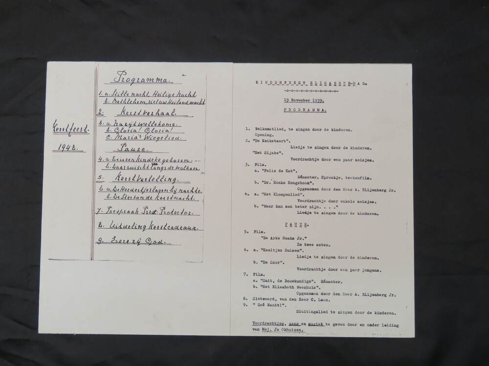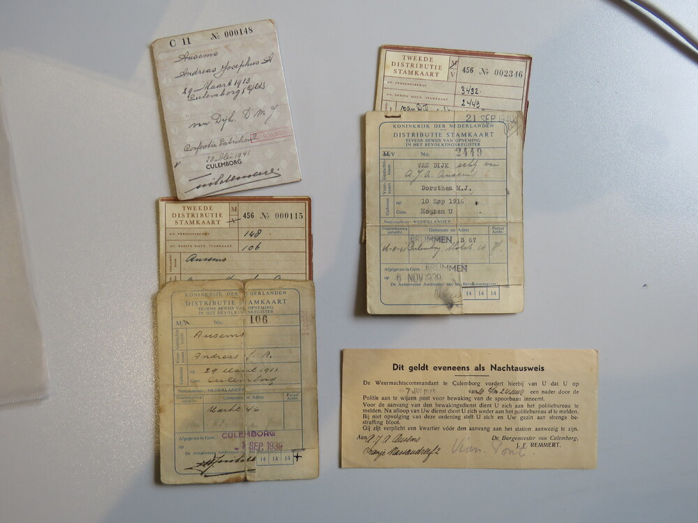 Diverse objecten waaronder kleedje, stamkaarten, dis...