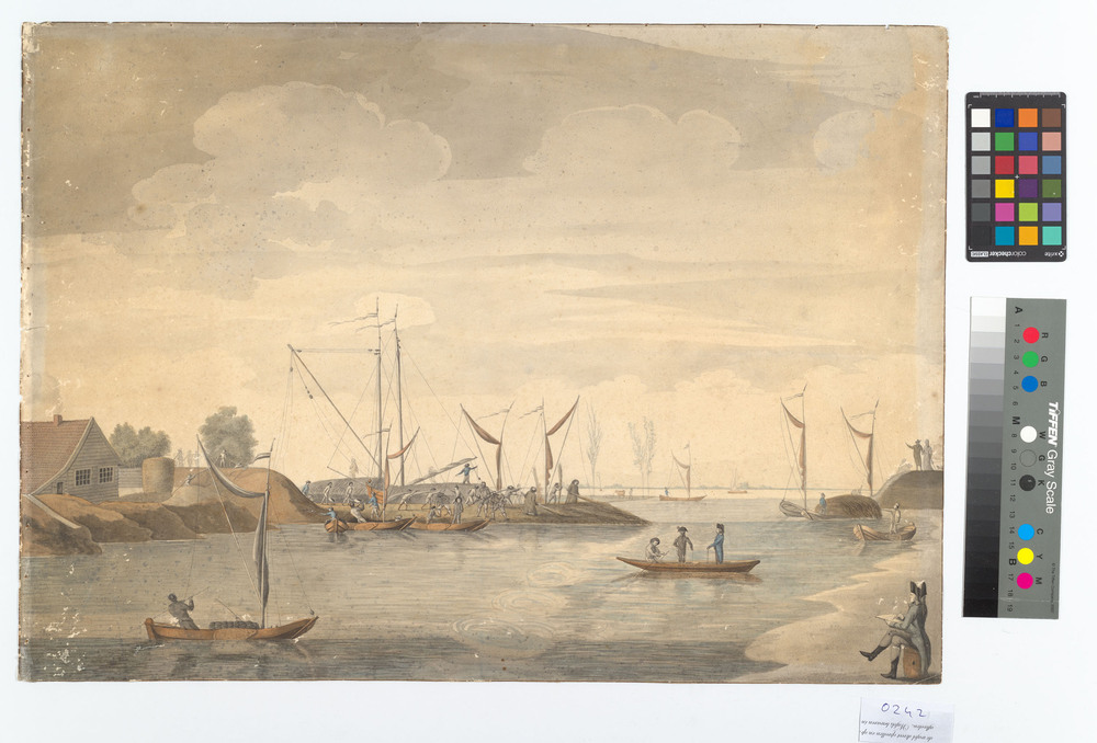 Aquarel, voorstellende Het dichten van de coupure aa...