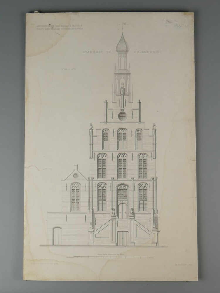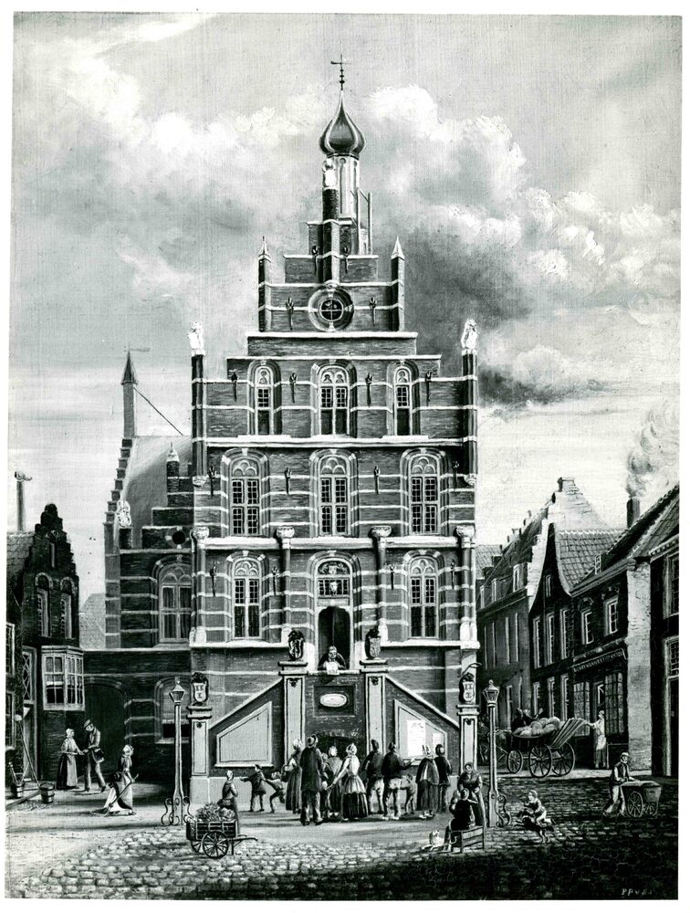 Litho, voorstellende de voorgevel van het stadhuis v...
