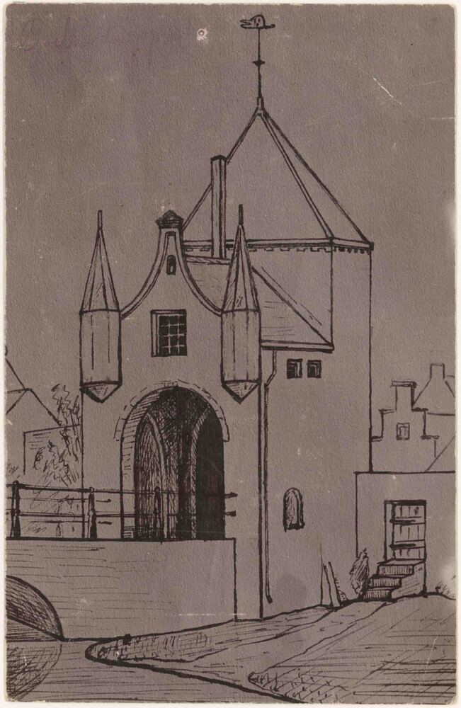 Foto, voorstellende middeleeuws pand Tollenstraat nr...