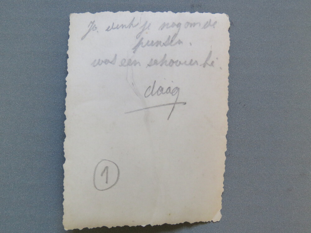 Foto, voorstellende arrenslee, achter huis van Dress...