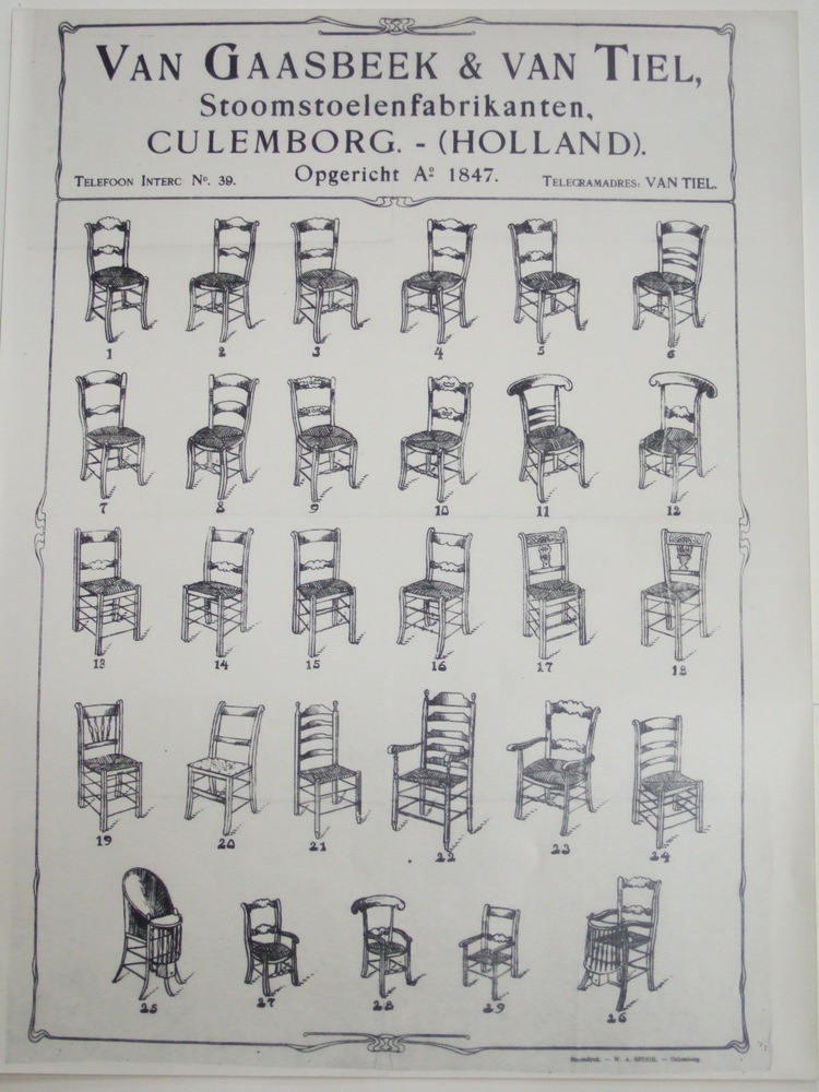 Affiche met voorbeelden van stoelmodellen van Van Ga...