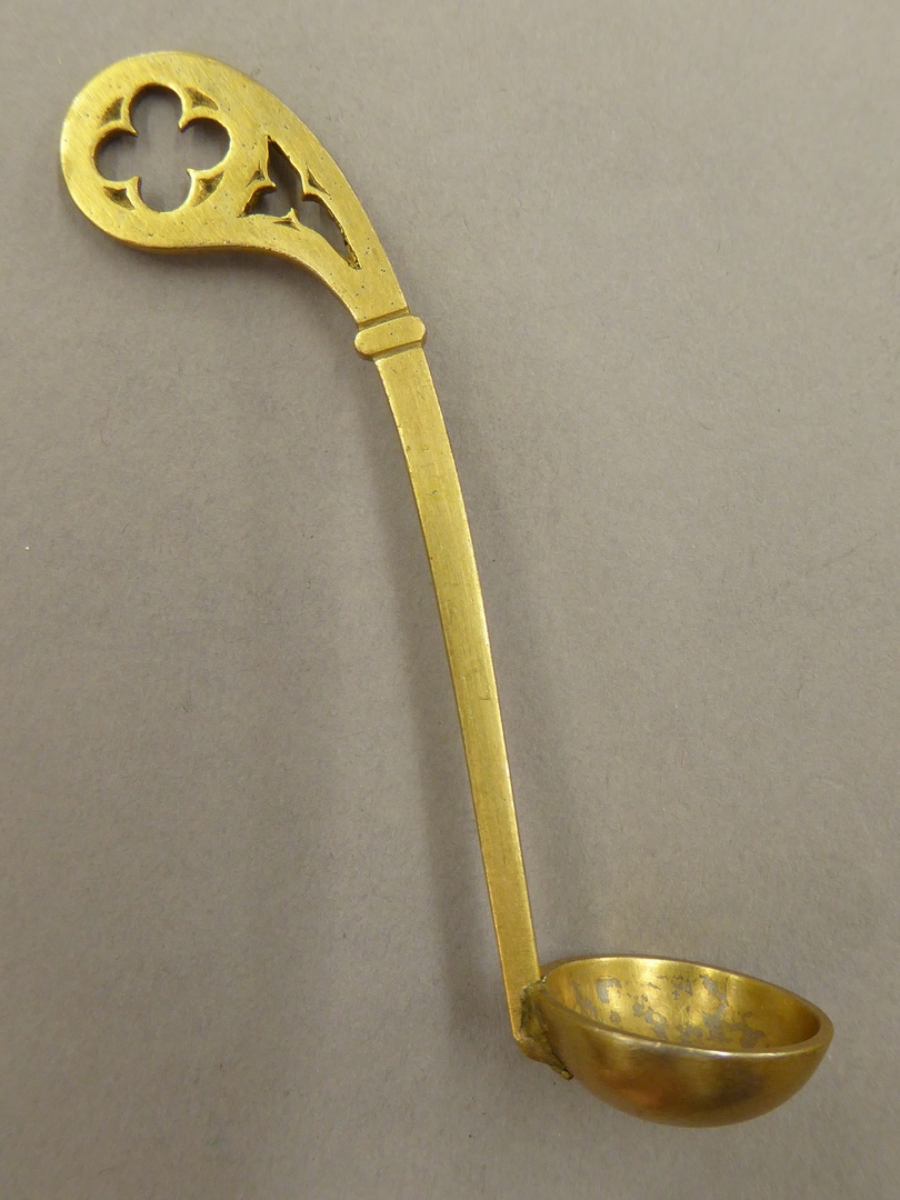 Vergulde kelklepel met gekruld uiteinde versierd met...
