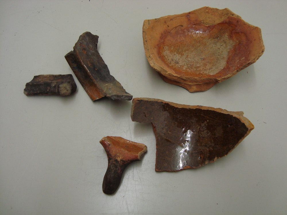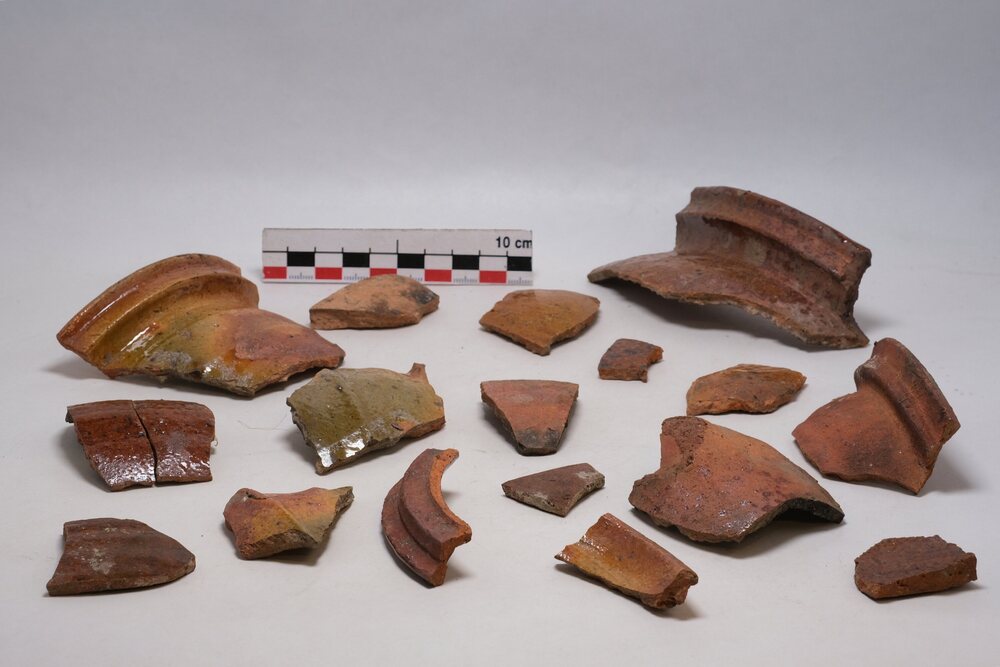 Vondstmateriaal, aardewerk/steengoed/ijzer/been/mortel,