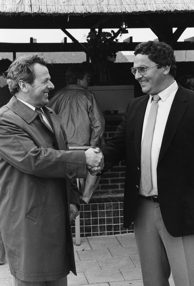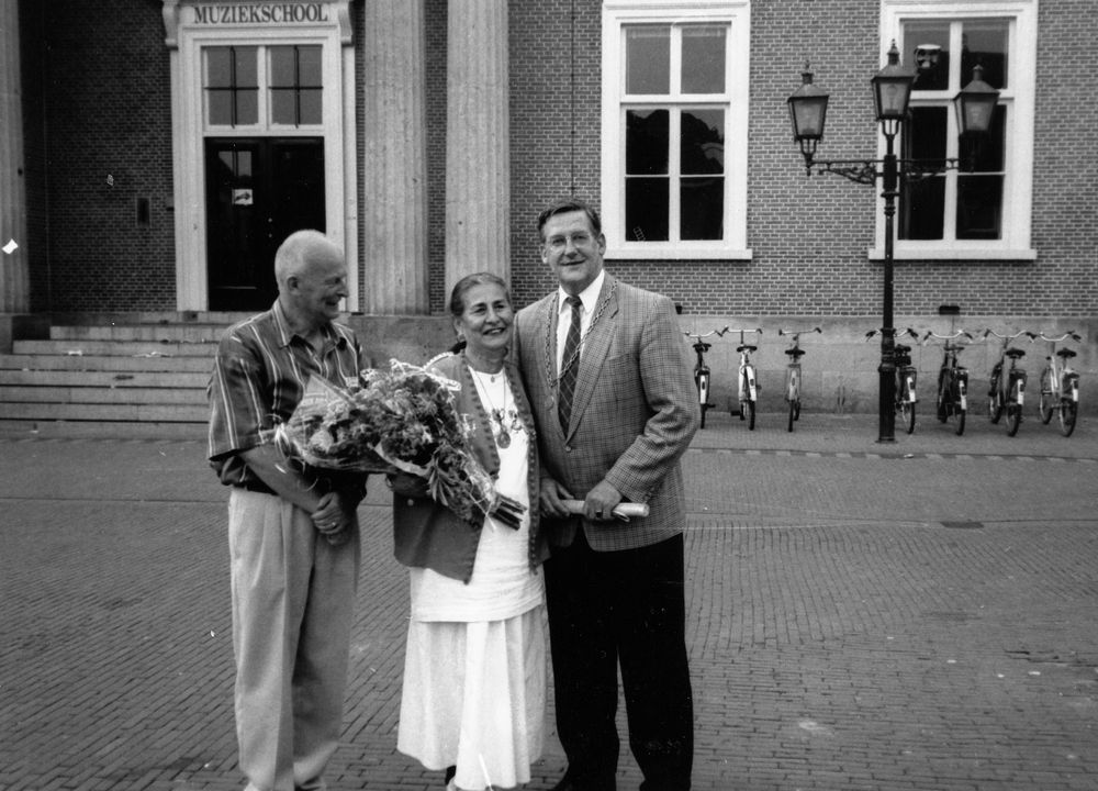 Wethouder Bruinewoud feliciteert Ton Meijer met de o...