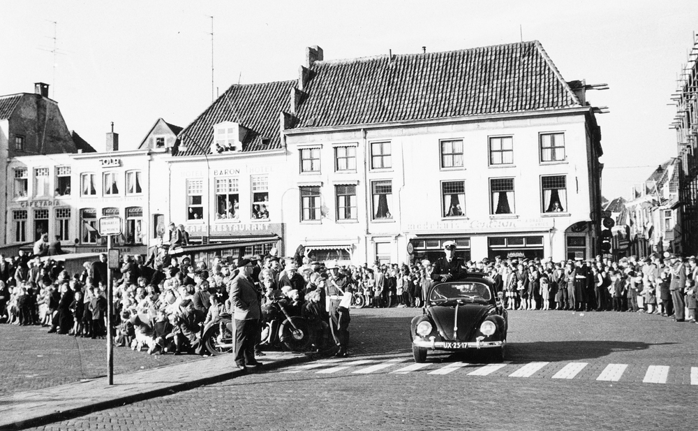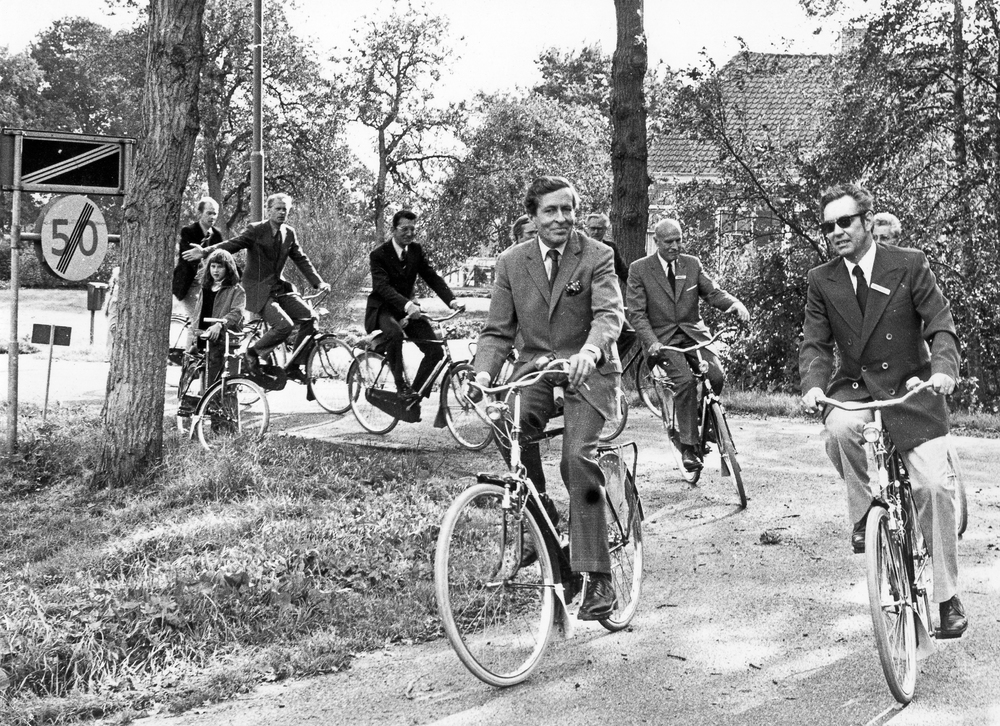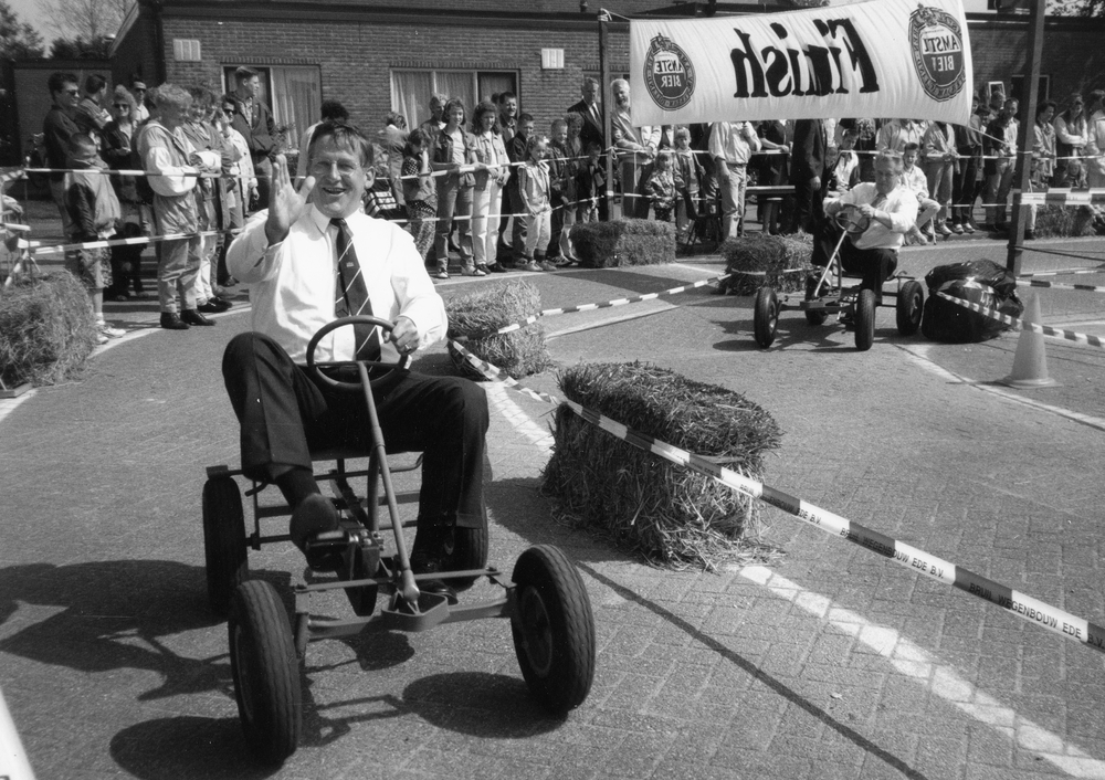Burgemeester J.G. de Groot tijdens skelterrace in Hi...
