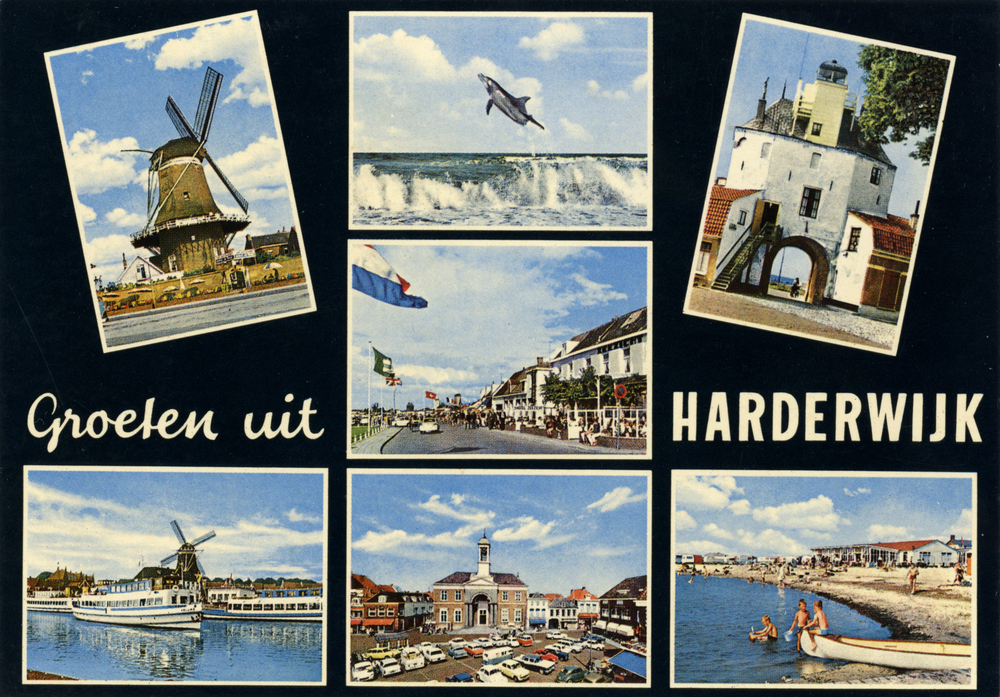 Prentbriefkaart, getiteld 'Harderwijk Dolfinarium en...