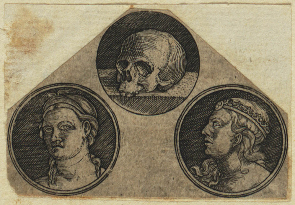 Twee vrouwenkoppen en een schedel