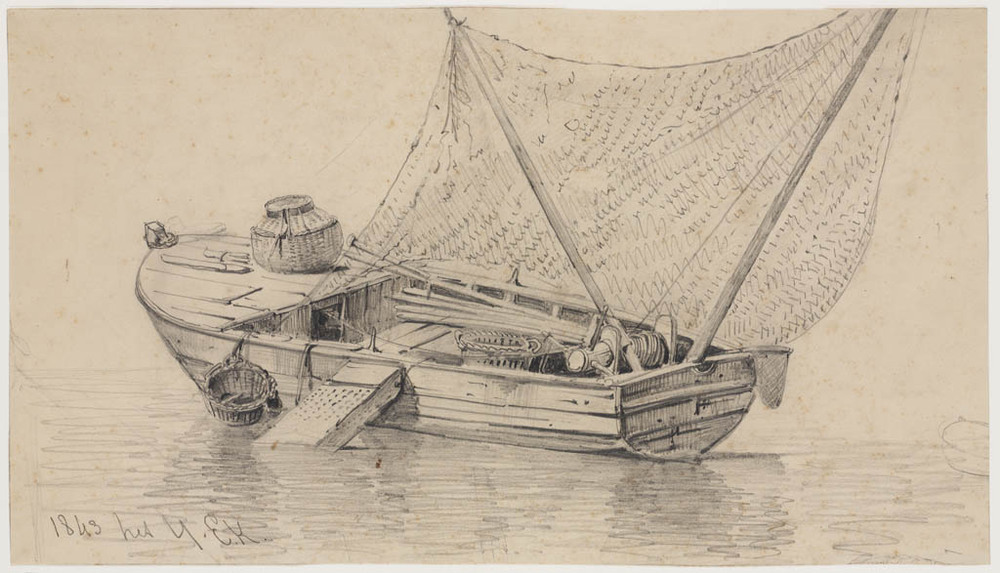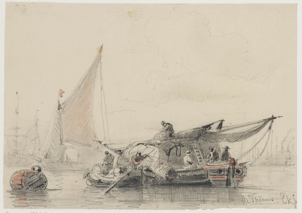 Studie van een vissersboot op het IJ