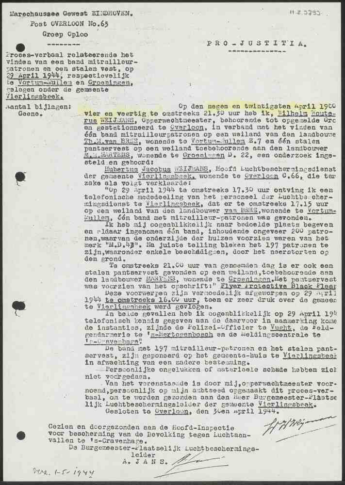 Proces-verbaal Marechaussee gewest Eindhoven Groep O...