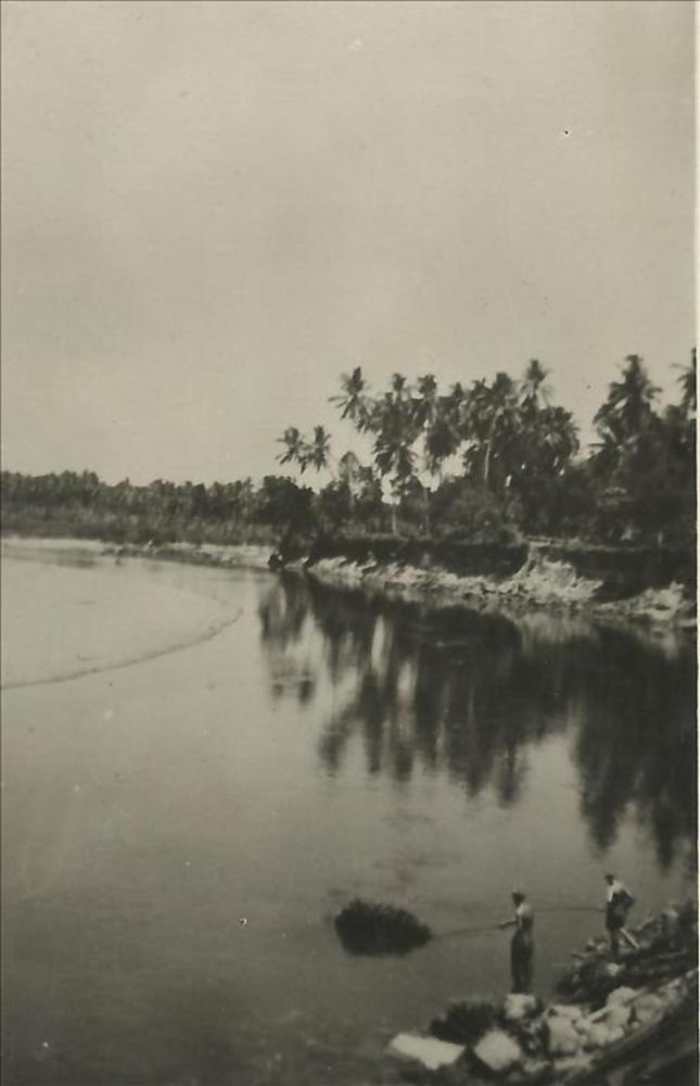 Ned. Indië na WO 2; rivier, kali, vissen, hengel