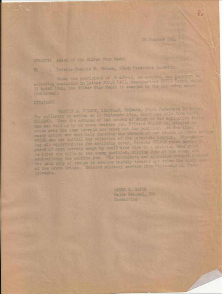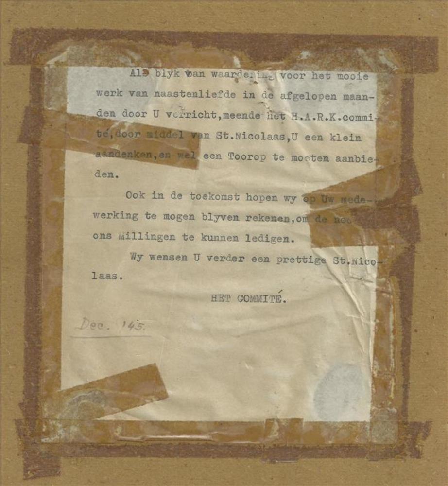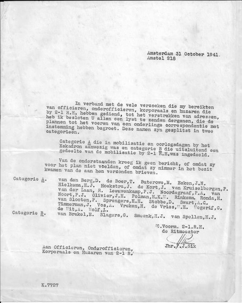Brief van de Commandant van het voormalig 2 - 1 R.H....