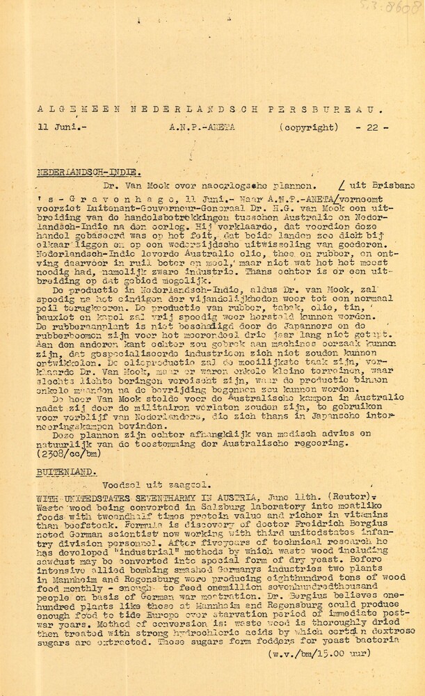 Vel: Algemeen Nederlandsch Persbureau, mededelingen,...