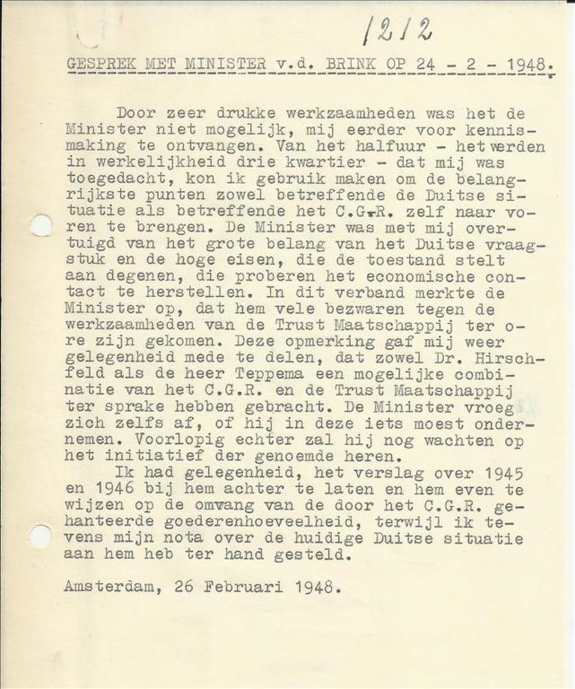 verslag van het gesprek met Minister v.d. Brink op 2...