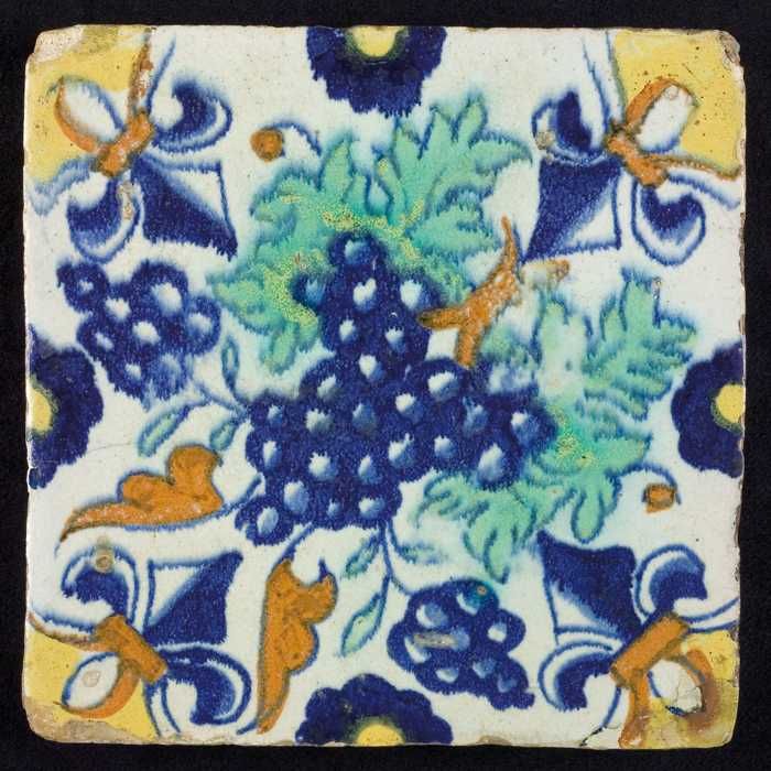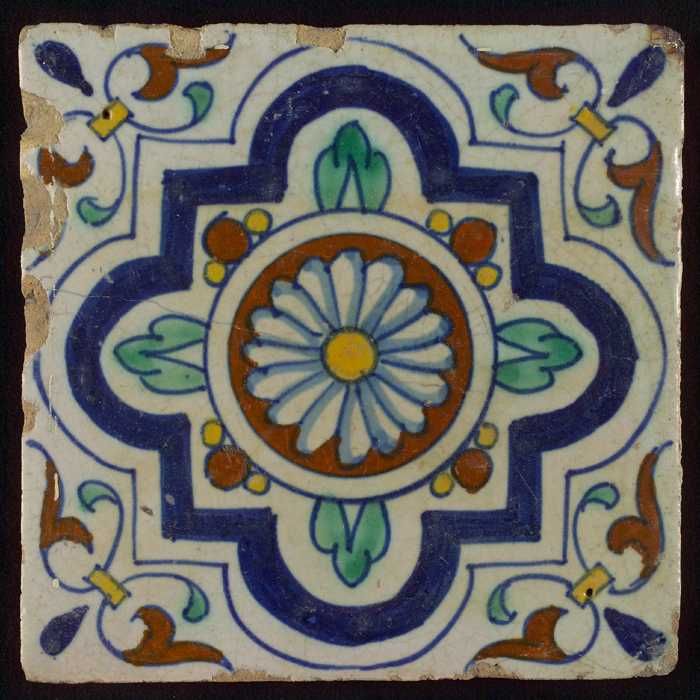 Ornamenttegel met granaatappel, hoekmotief lelie