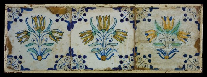 Rechthoekig tegelveld, drie tegels, bloemendecor, or...