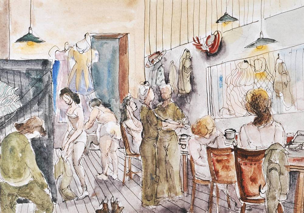 Aquarel 'Achter de schermen van het Tivoli theater'....