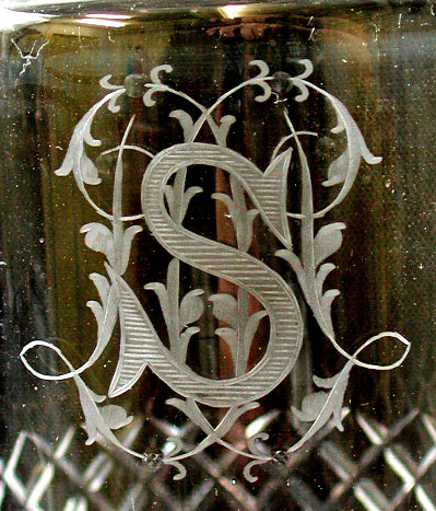 Karaf en glazen van kristal (een van zes portglazen)