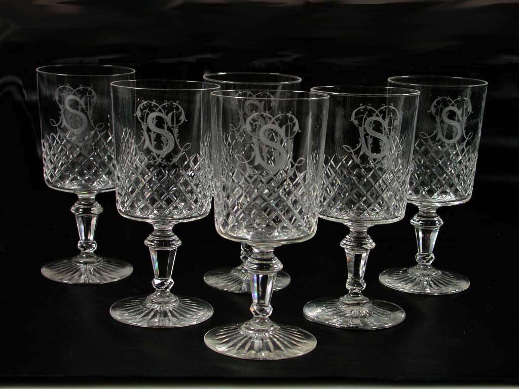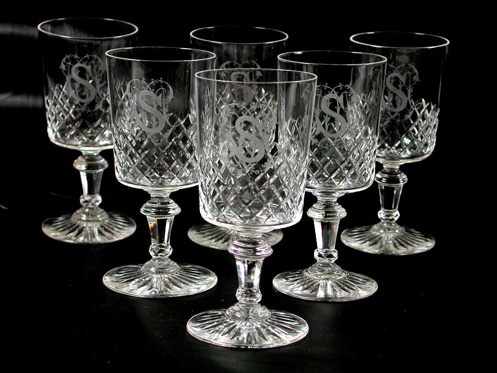 Karaf en glazen van kristal (een van zes champagnegl...