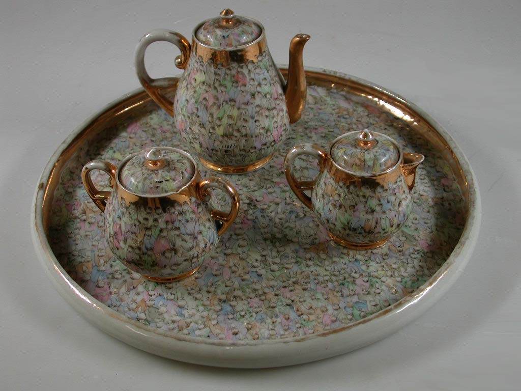 Japans dienblad met theepot, suikerpot en melkkan