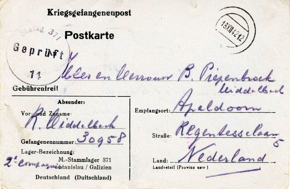Kriegsgefangenenpost Postkarte M.-Stammlager 371 Sta...