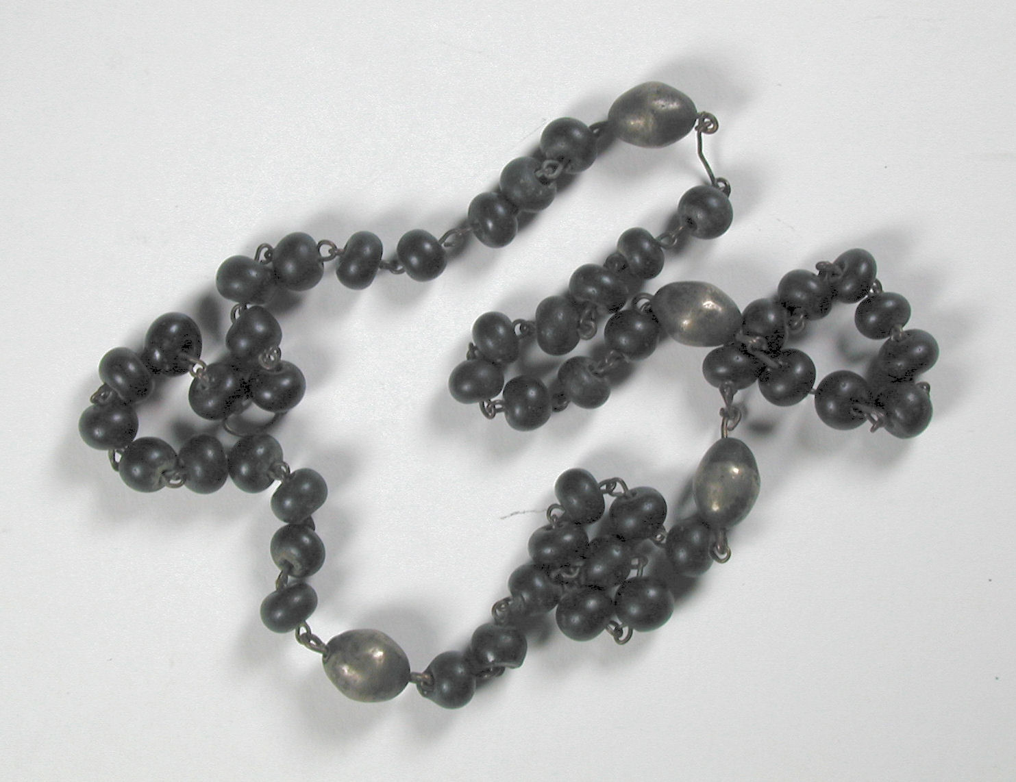 Rozenkrans met zwarte benen(?) kralen en vier zilver...