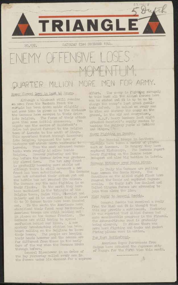 "Triangle, No. 192, saturday 23 december 1944"