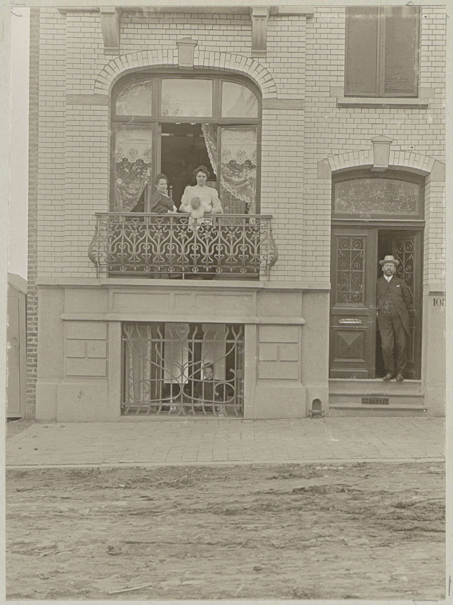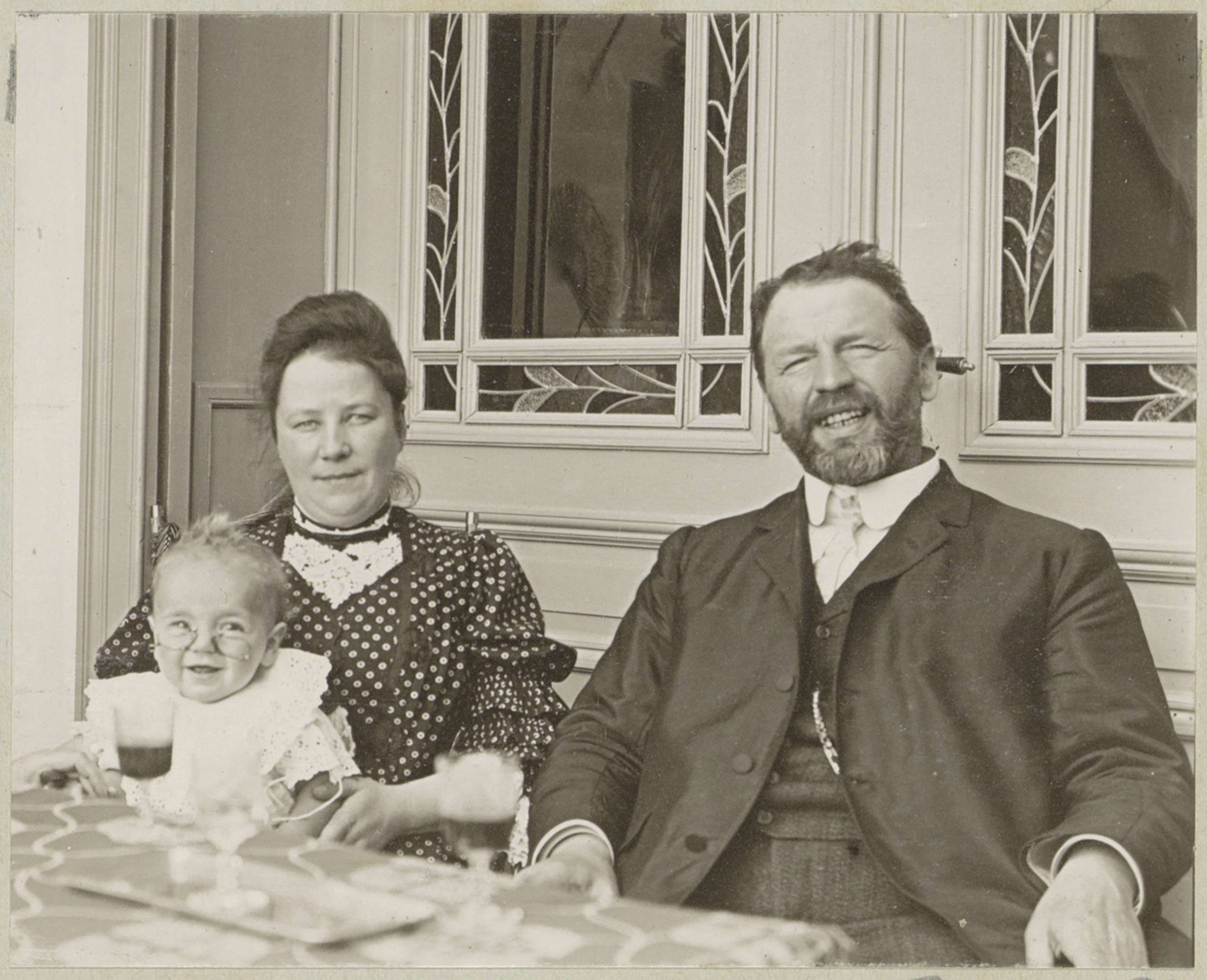 Man, twee vrouwen en een baby in een deur- en raamop...