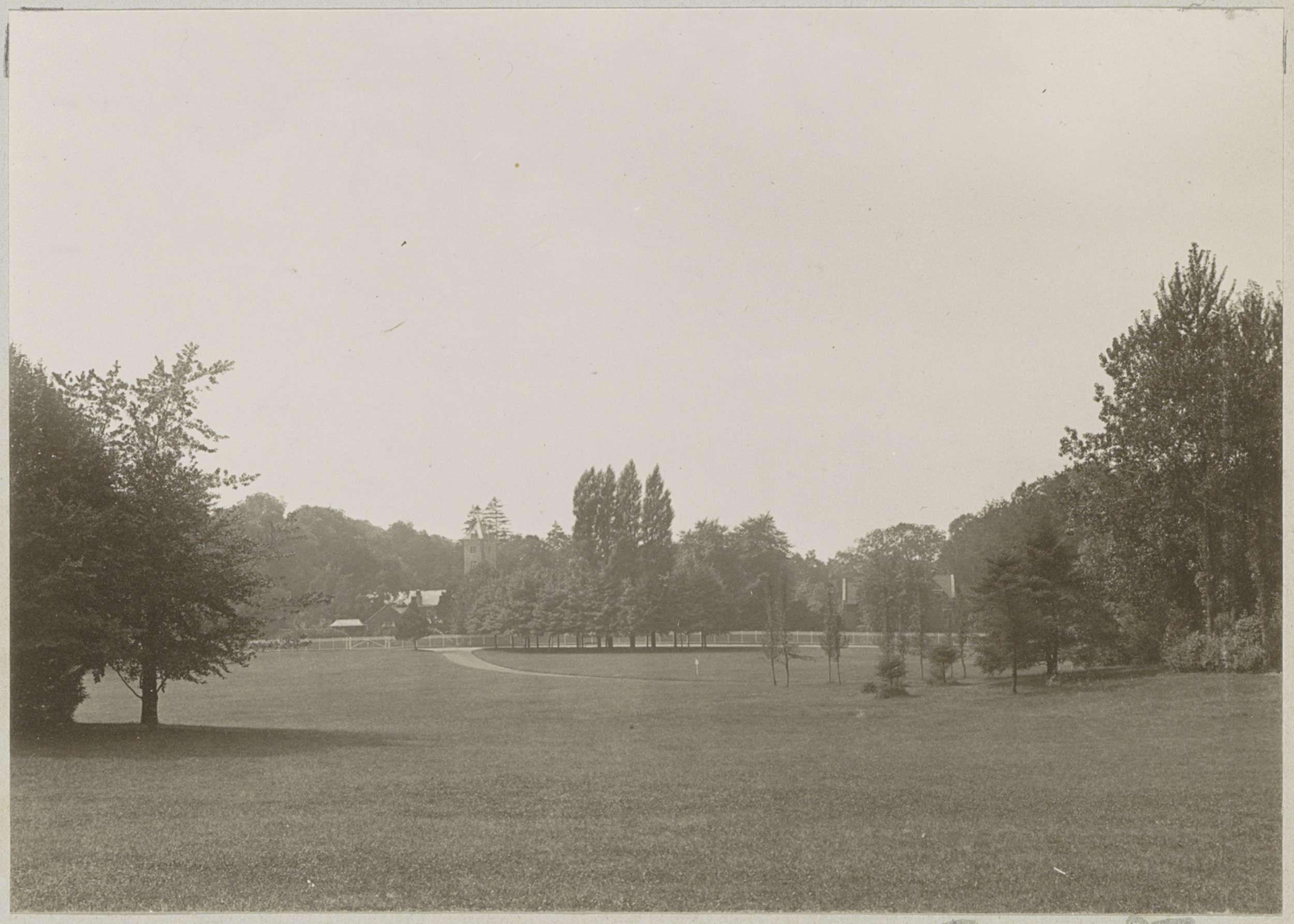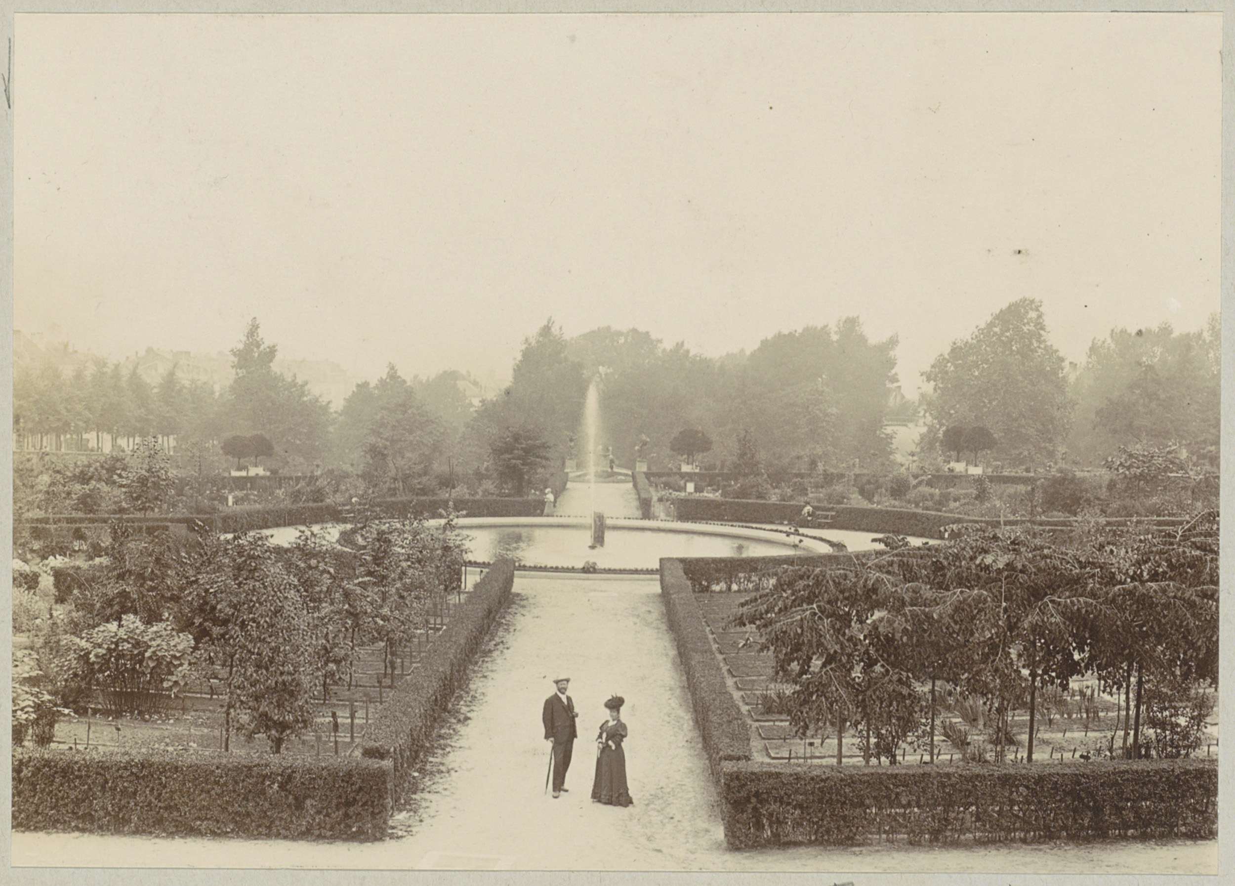 Park met hagen en wandelaars, vermoedelijk in Brussel