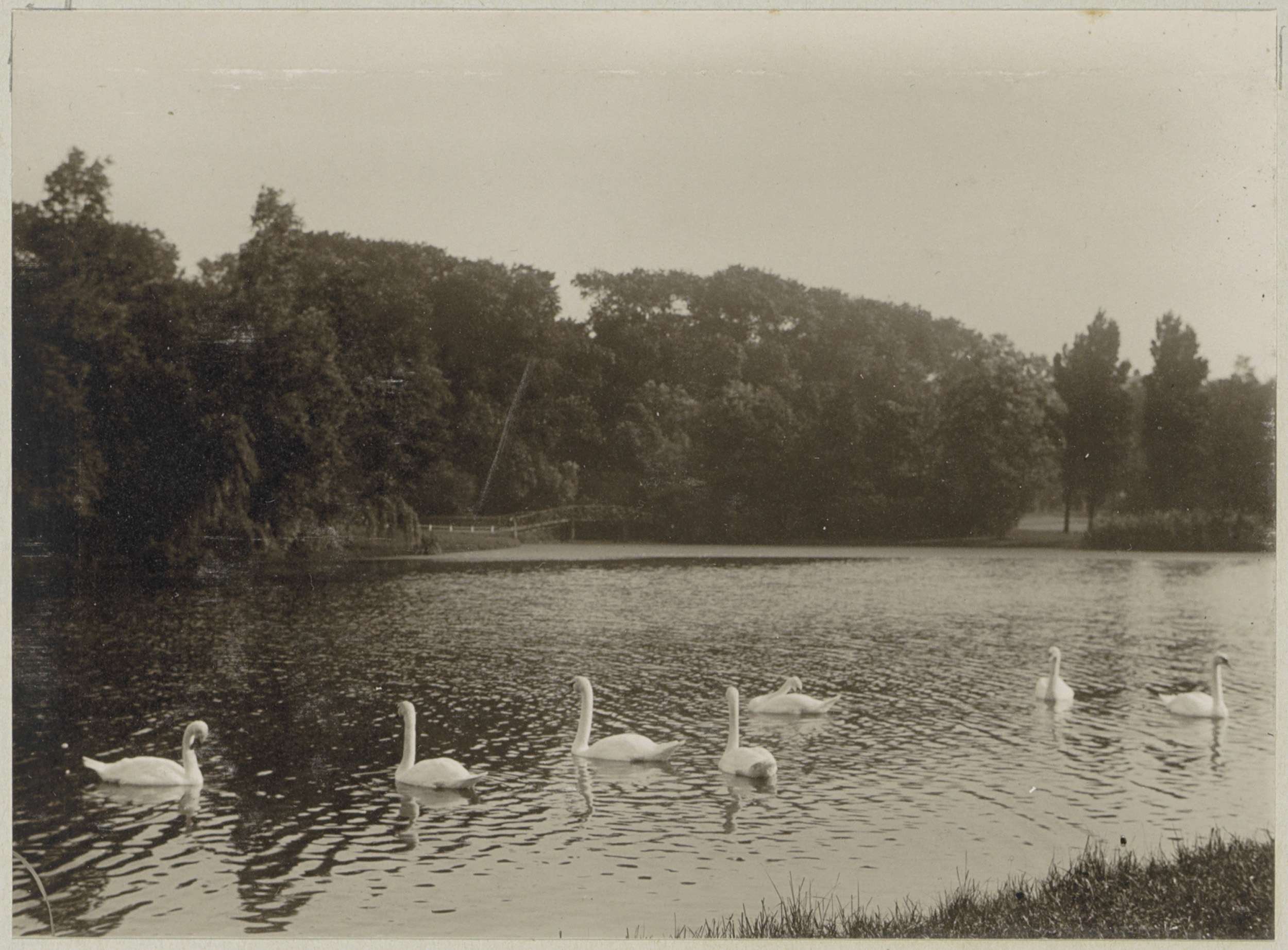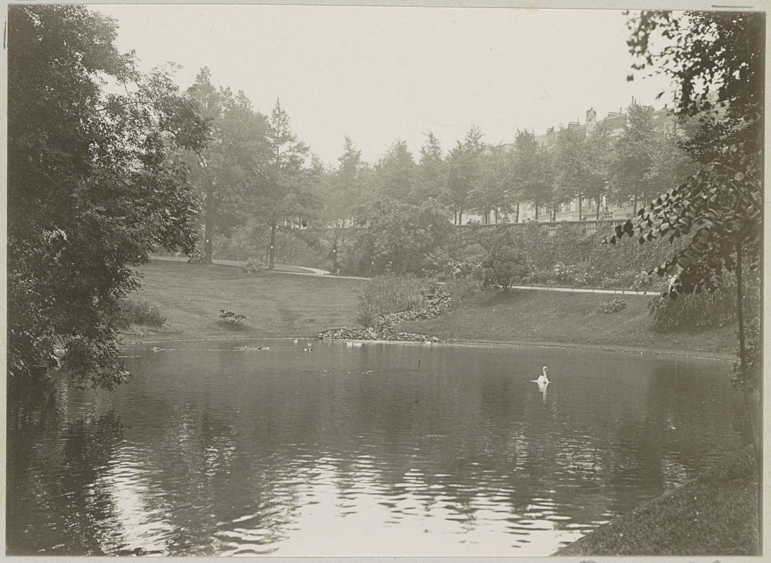 Vijver in het Amsterdamse Vondelpark, op de achtergr...