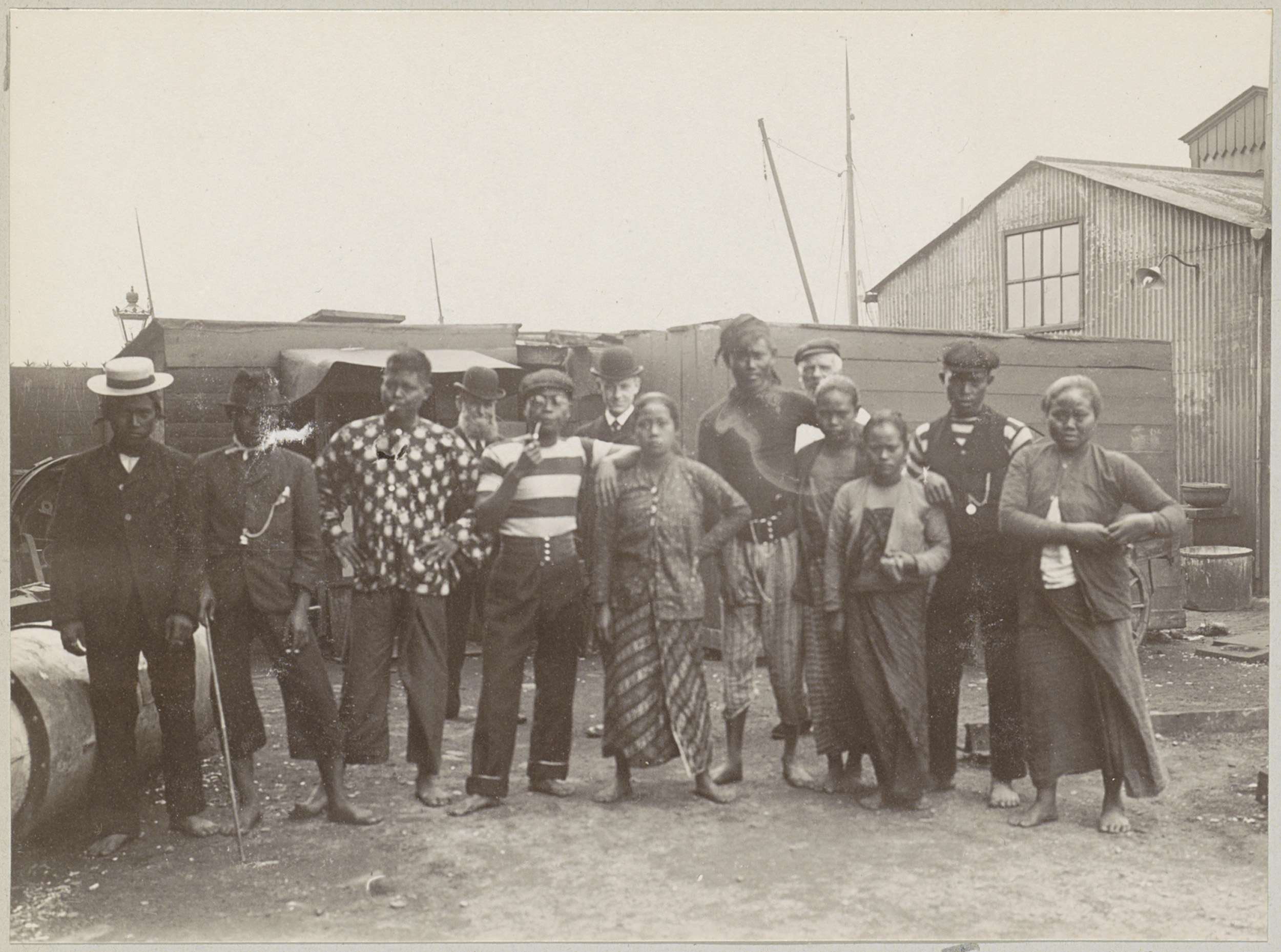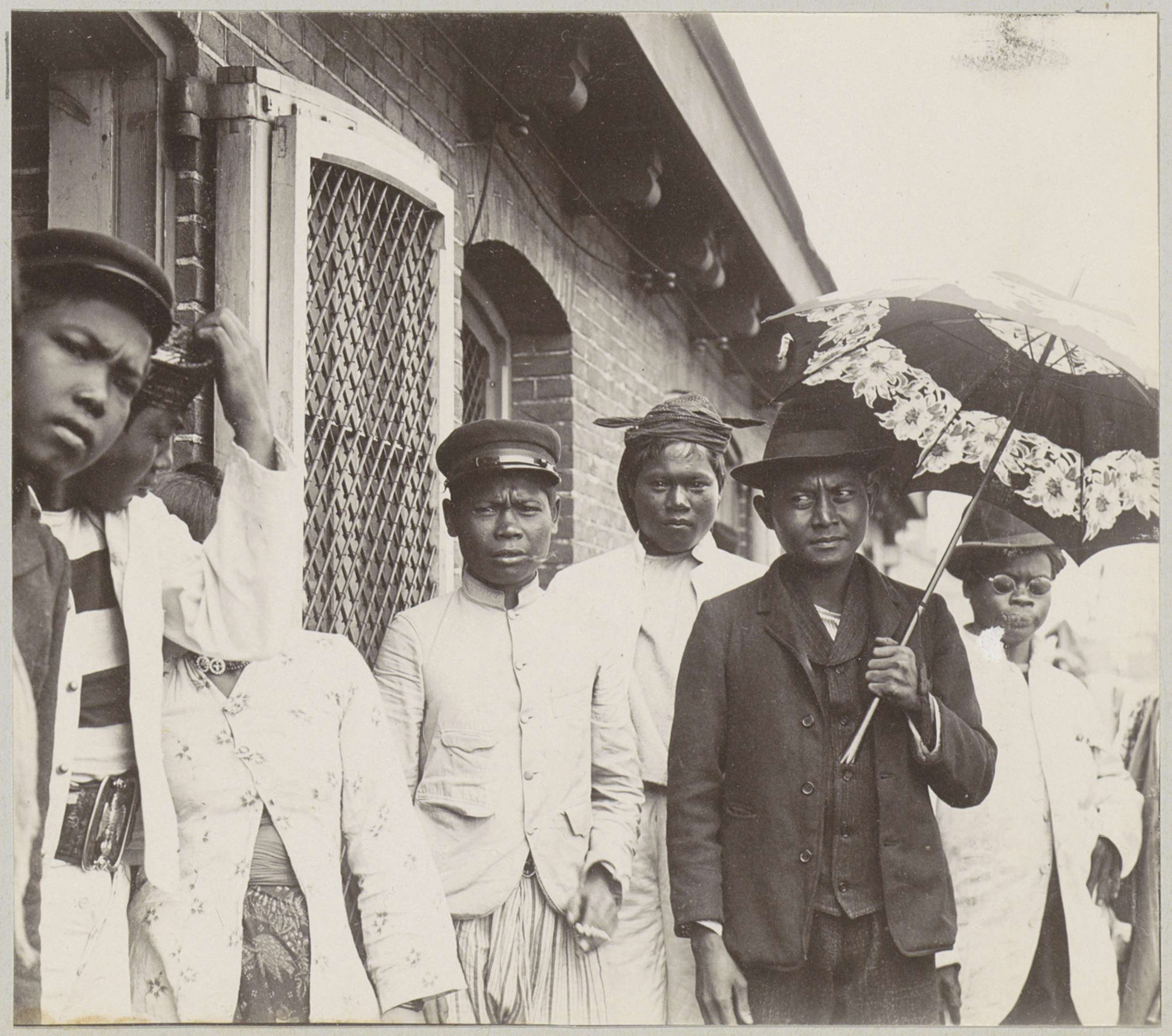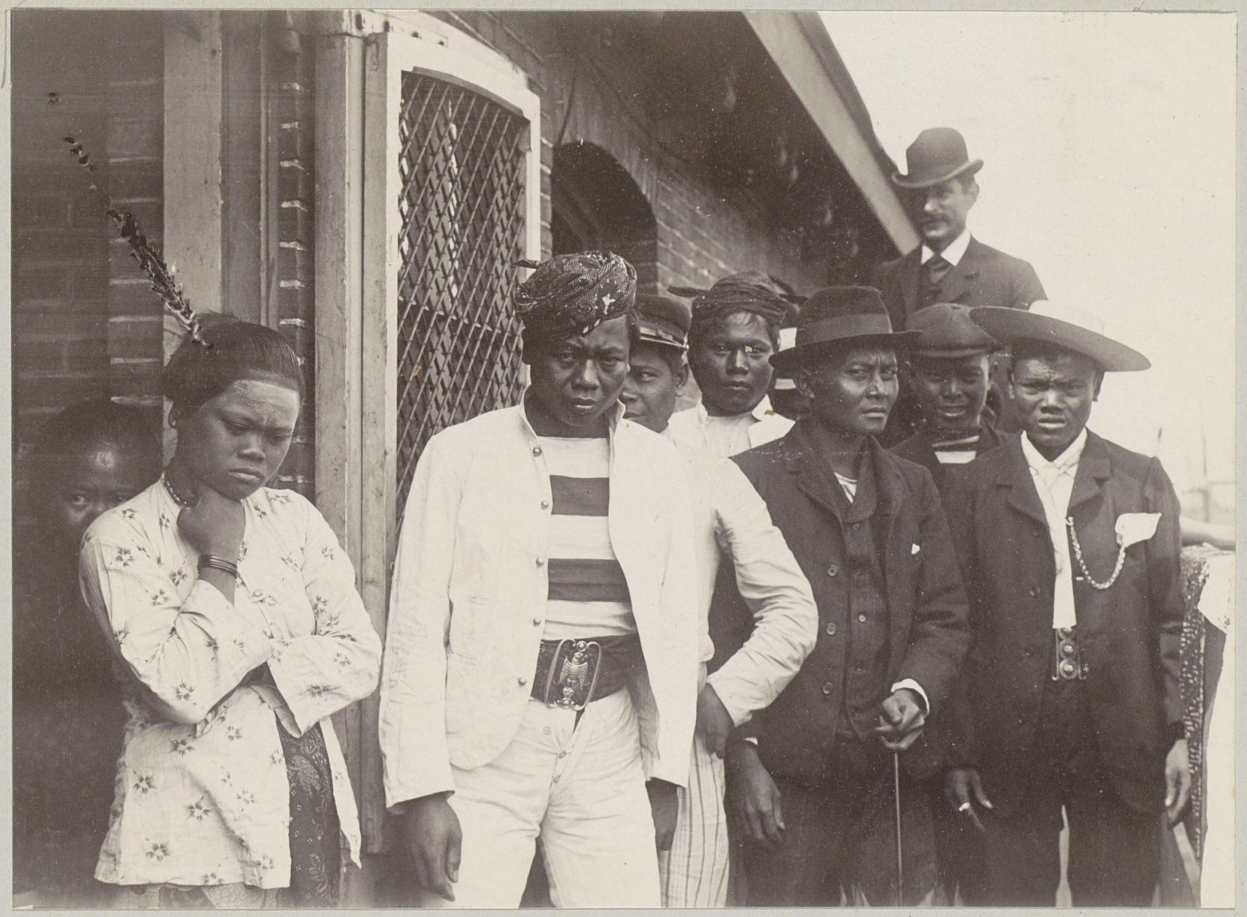 Indonesische mannen en vrouwen, op de achtergrond ee...