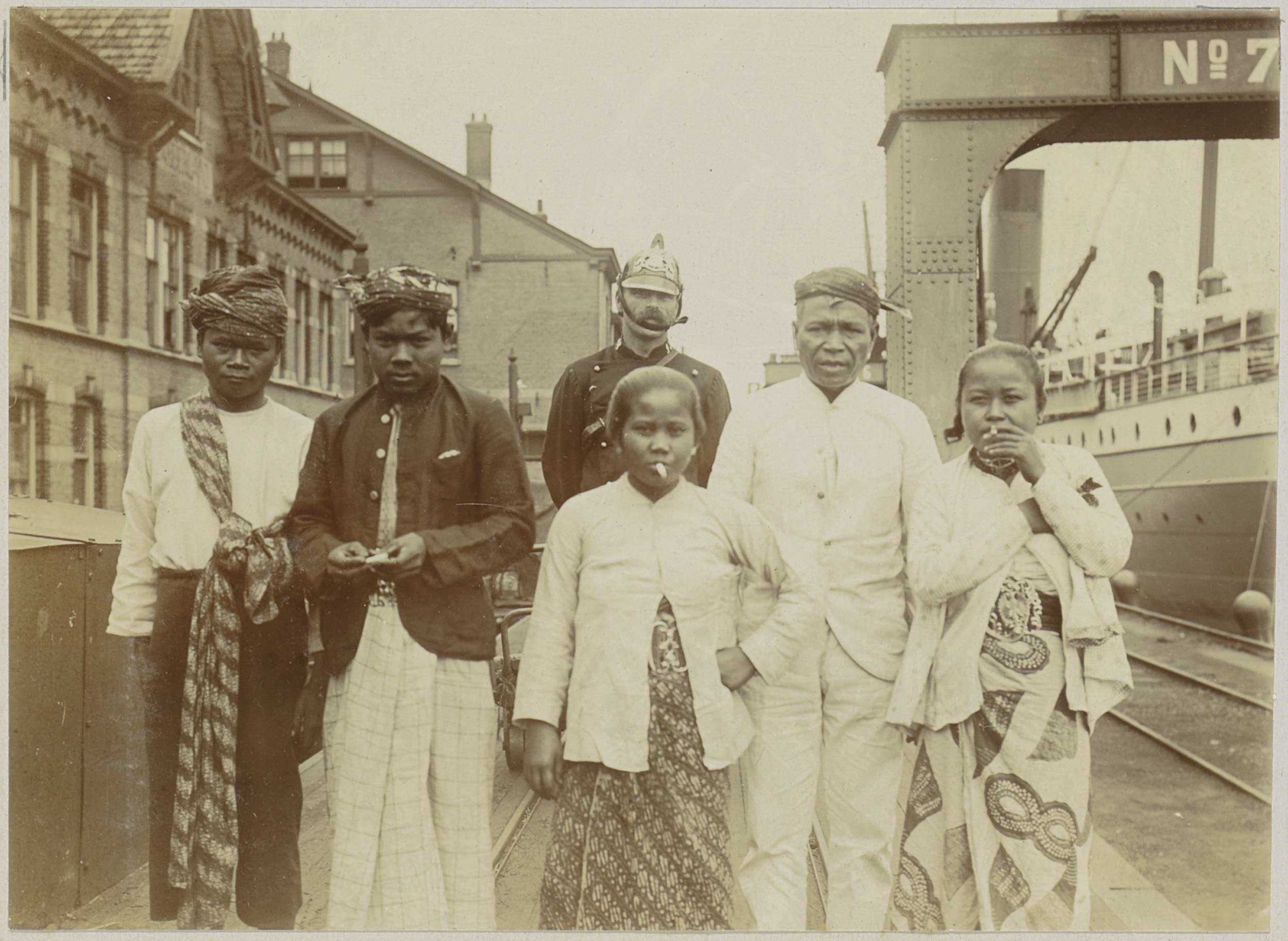 Indonesische mannen en vrouwen, op de achtergrond Eu...