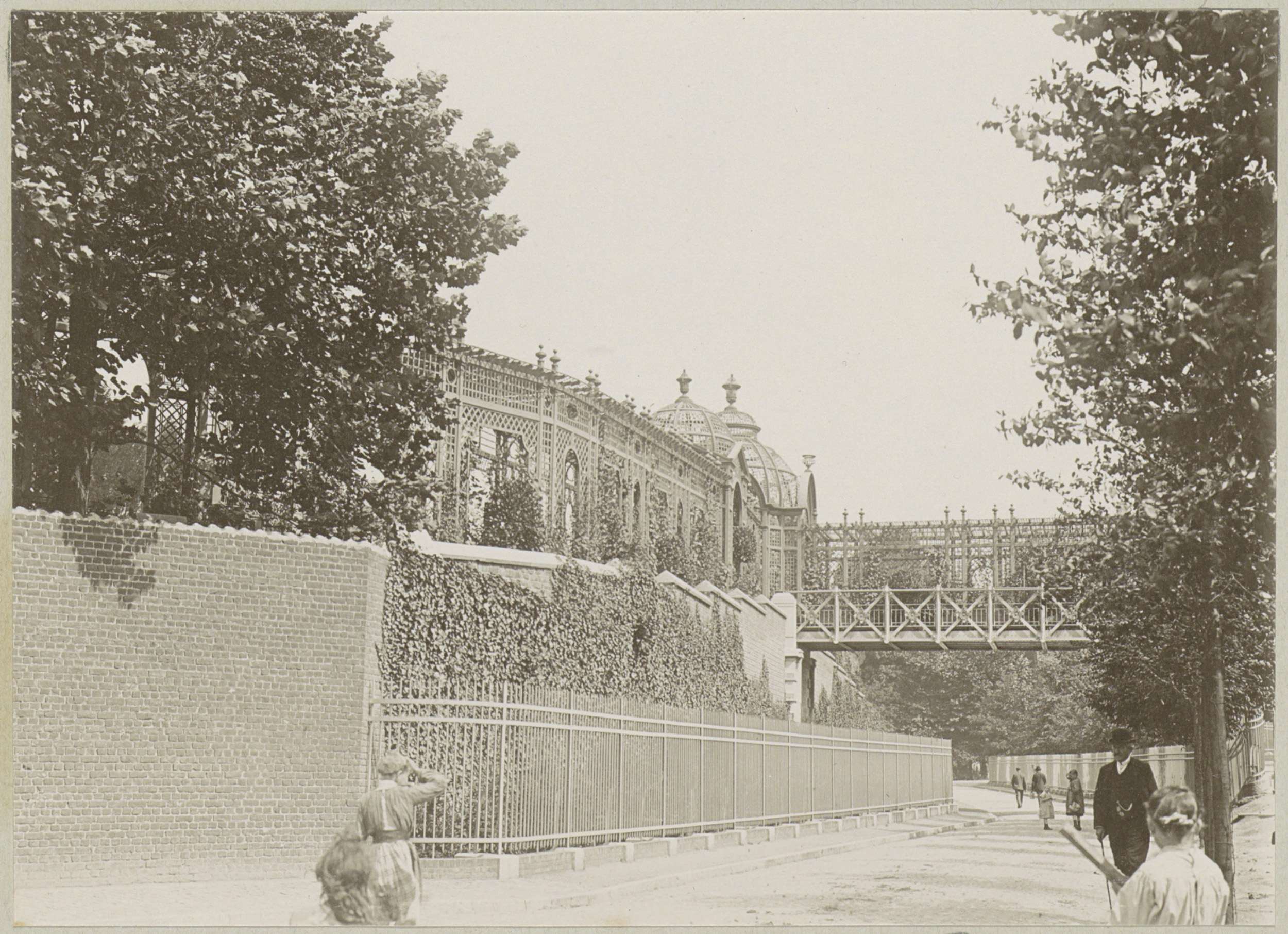 Plantenhuis en wandelaars, mogelijk in de hortus van...
