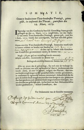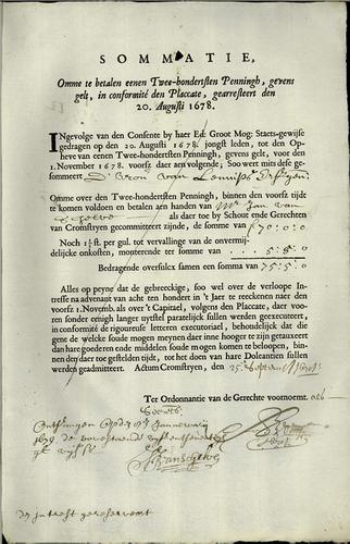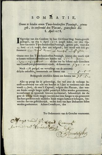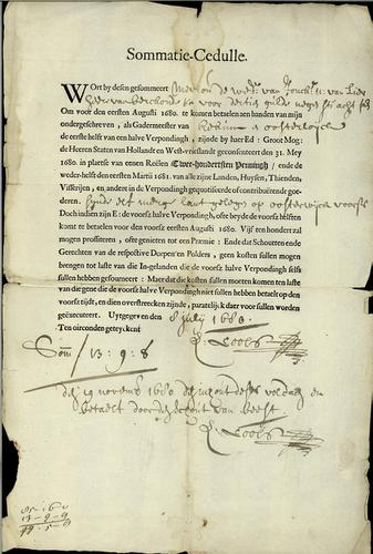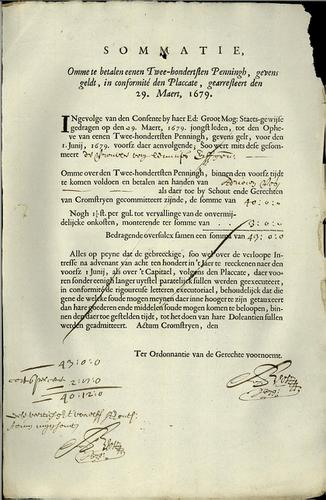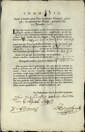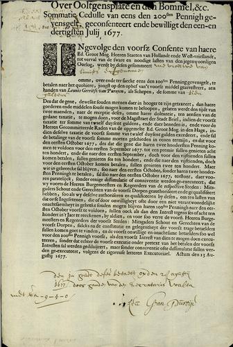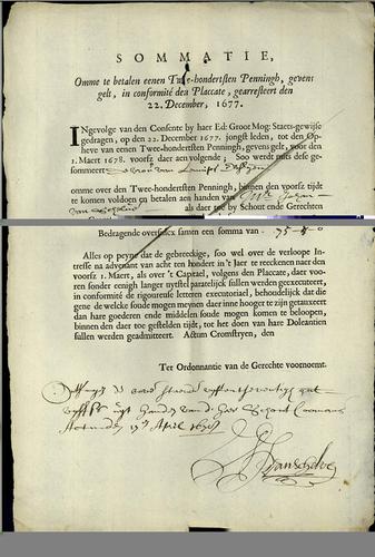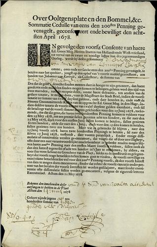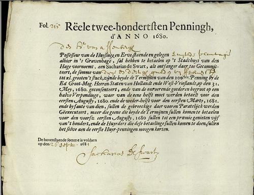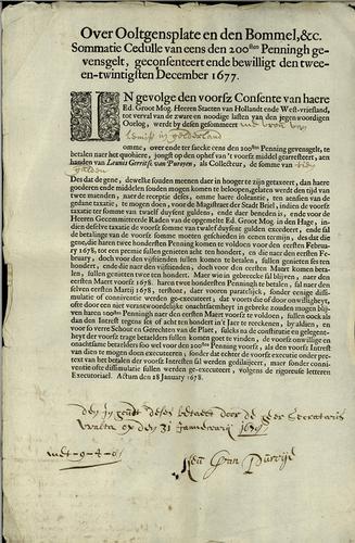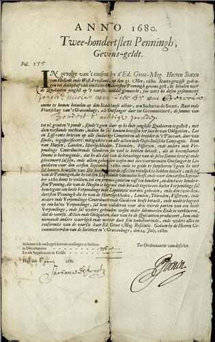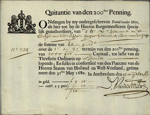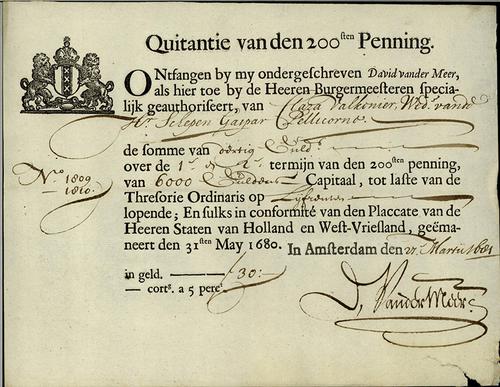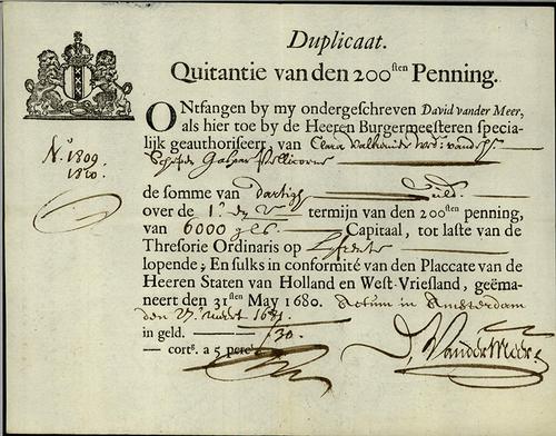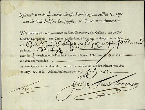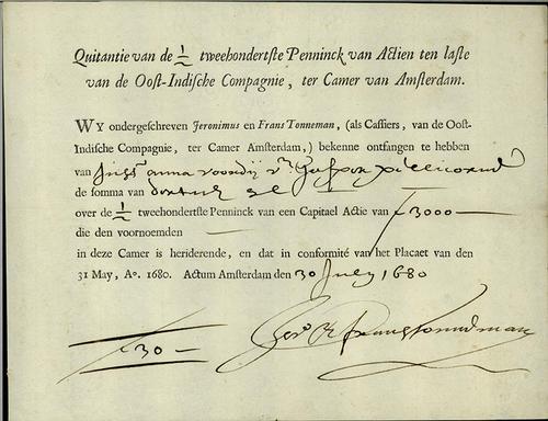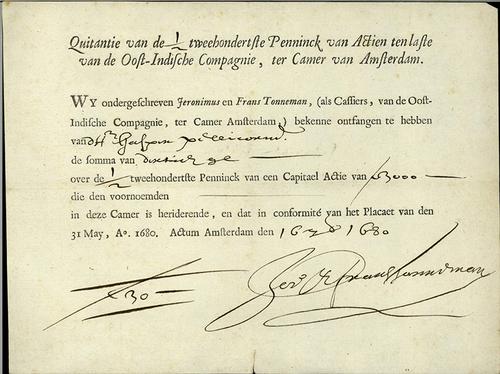 kwitantie 1/2 200e penning op effecten van de V.O.C....