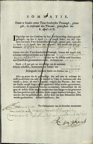 Kwitantie, halve tweehonderdste penning van actiën, ...