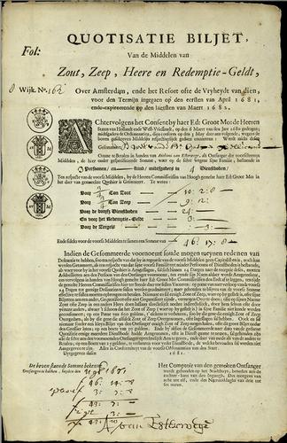 Quotisatie biljet: Zout-, Zeep-, Heere- en Redemptie...