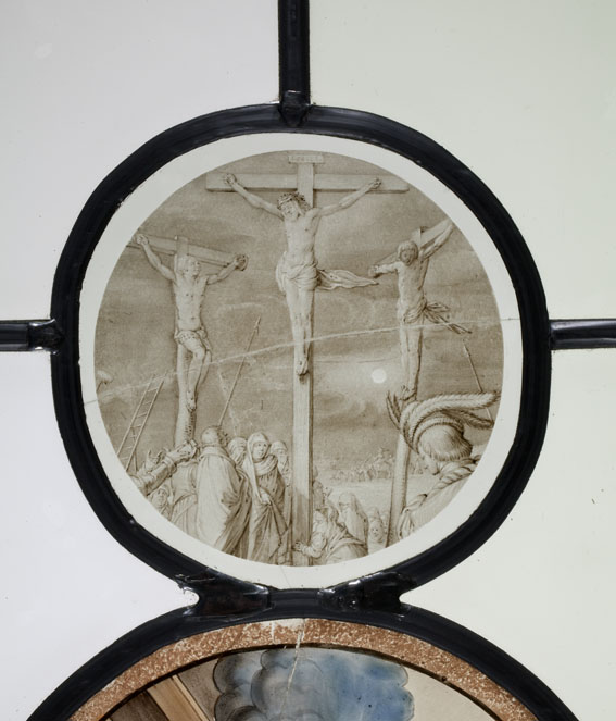 Lijst waarop in reliëf de lijdenswerktuigen van Chri...