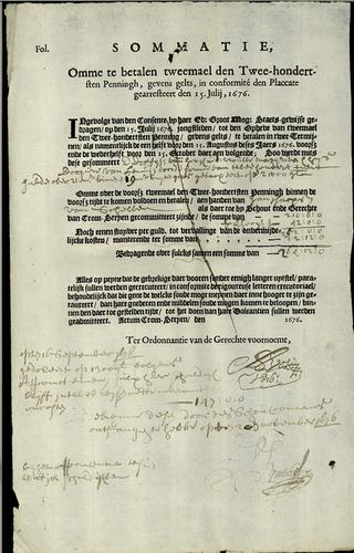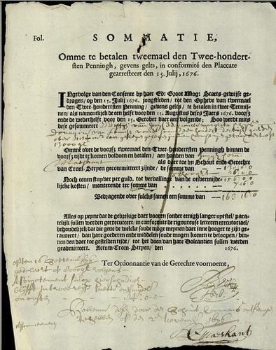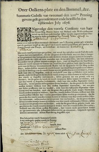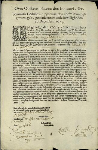 Aanslagbiljjet, 200sten penning, 1676