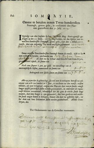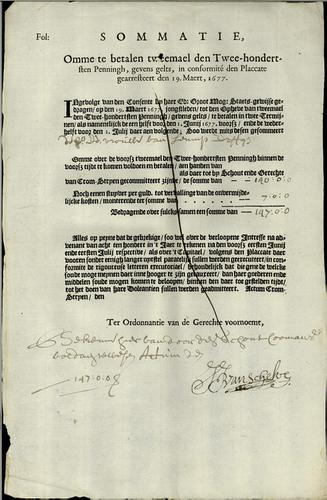 Belastingformulier 200e penning, 1677