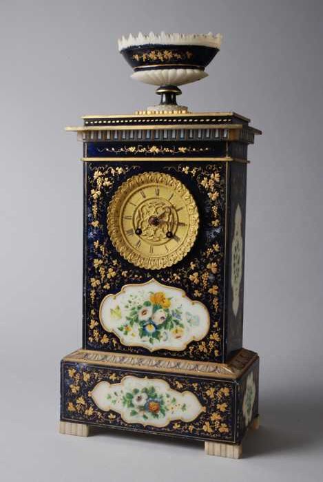 Albasten tafelklok, donkerblauw met goud beschilderd...