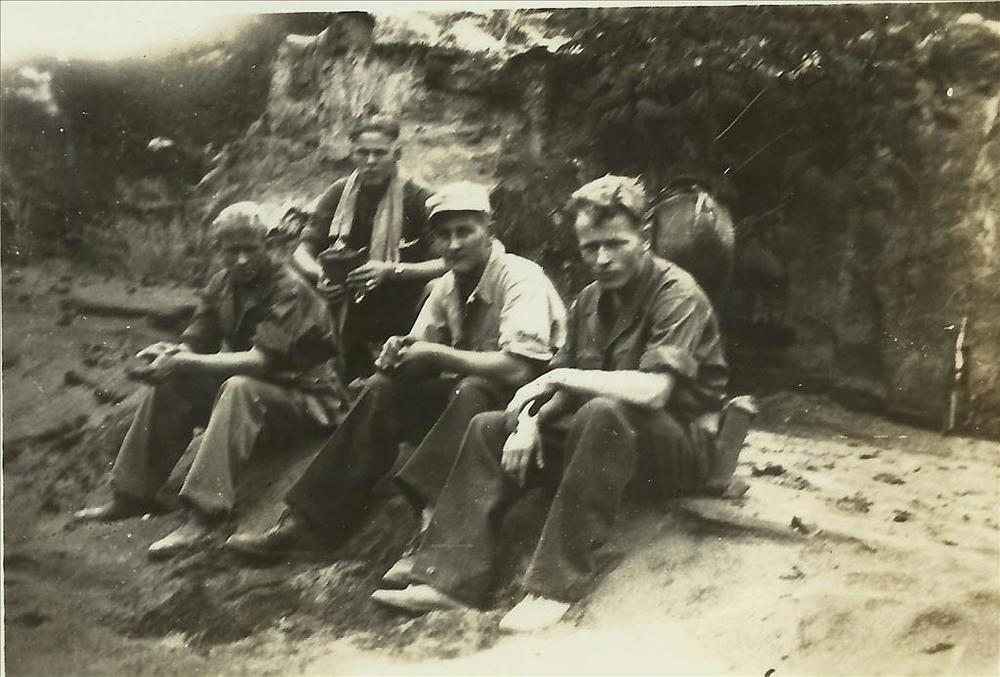 Foto twee gehurkte mannen. Tekst achterop: "Amerikaa...