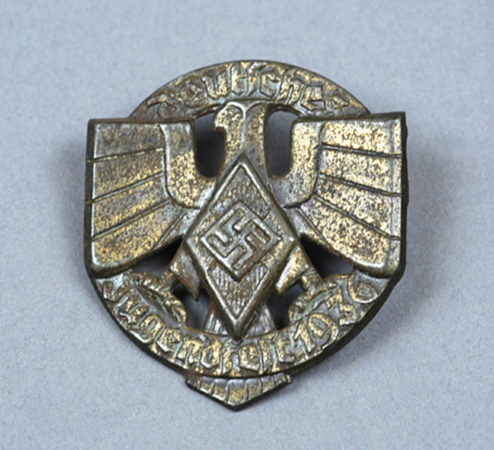 metalen speld met opschr: 'Deutsches Jugendfest 1936...