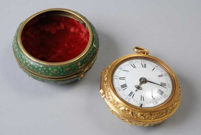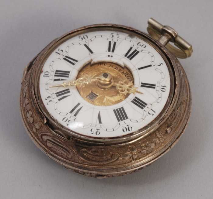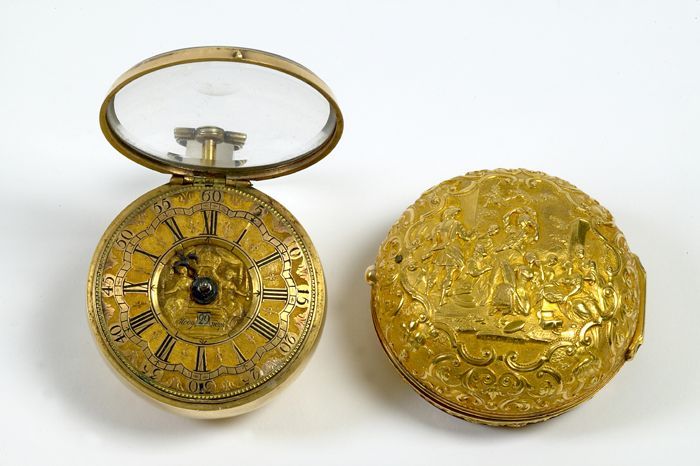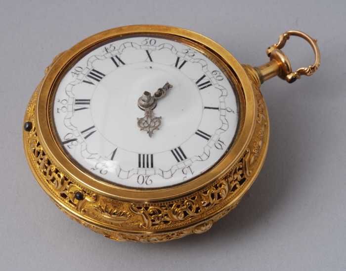 Zakhorloge met gouden ajour buitenkast, ajour binnen...