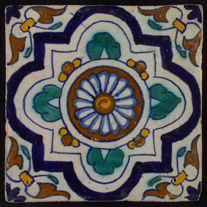 Ornamenttegel, centrale rozet met vierpasvariant, ho...