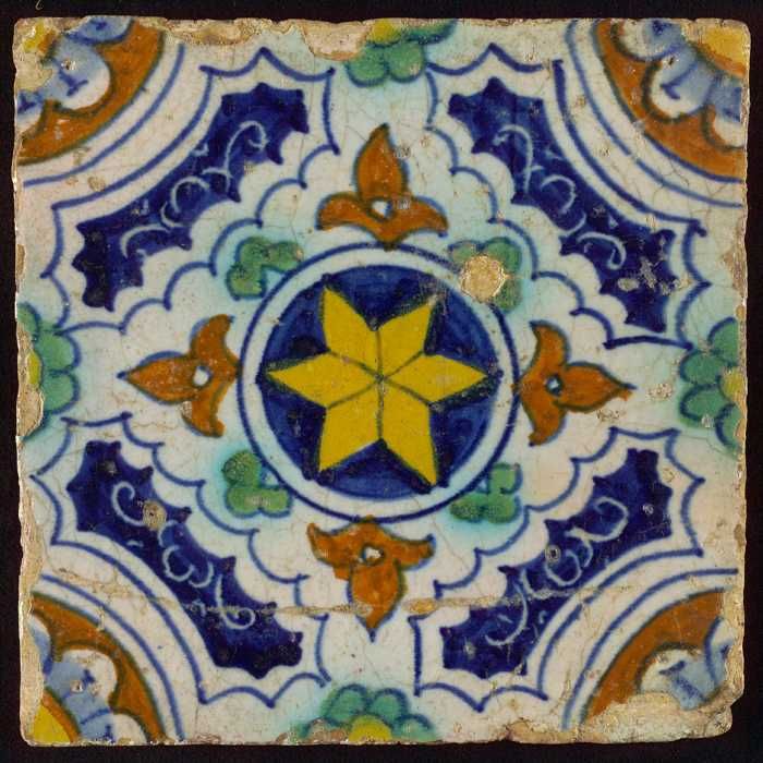 Ornamenttegel, ster in cirkel, sgraffito vlakken, ho...
