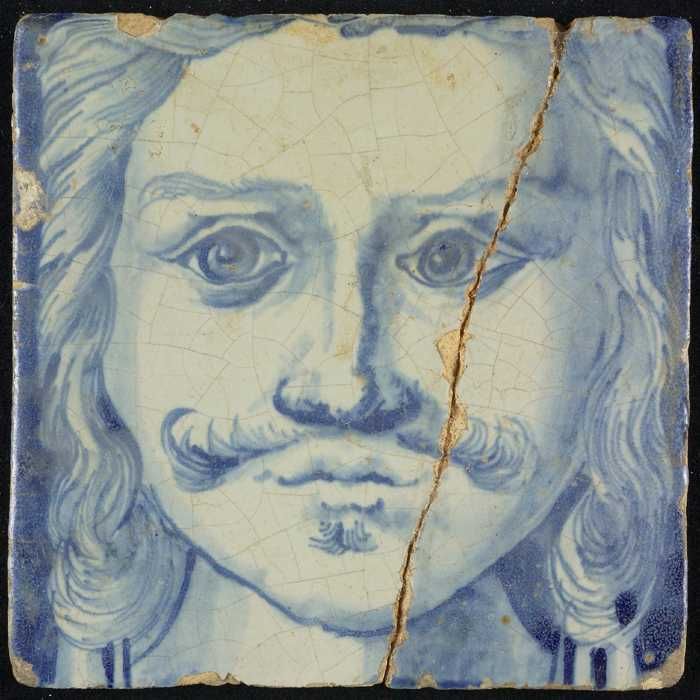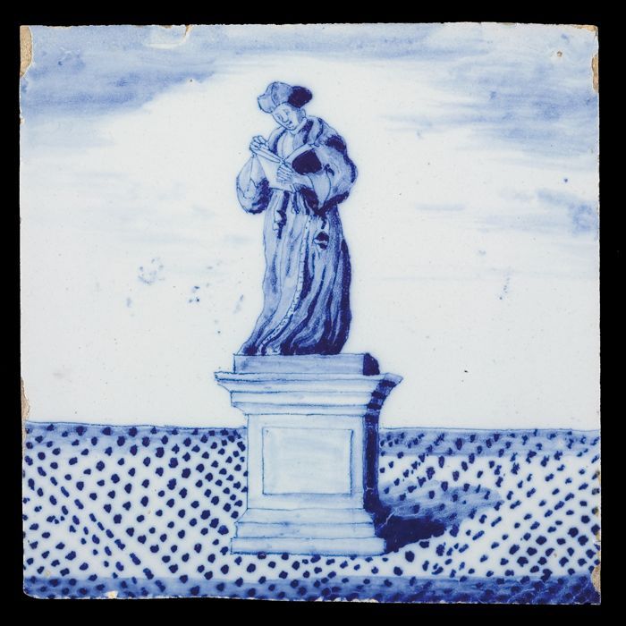 Tegel van schoorsteenpilaster, blauw op wit, hoofd v...