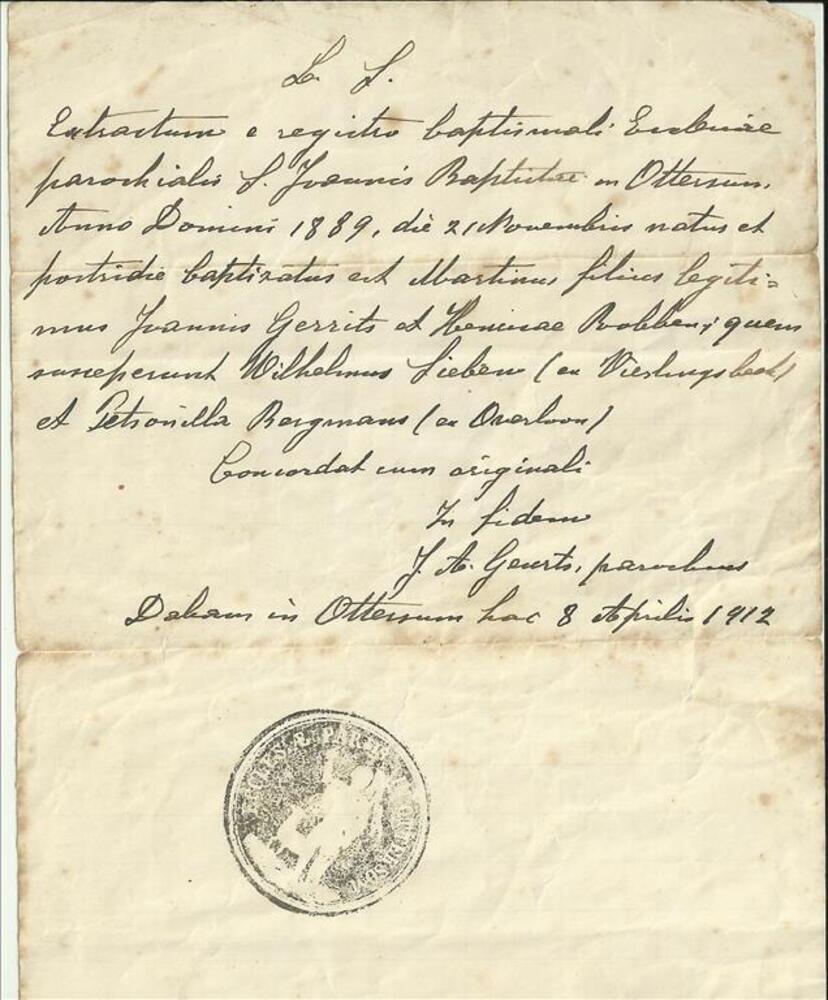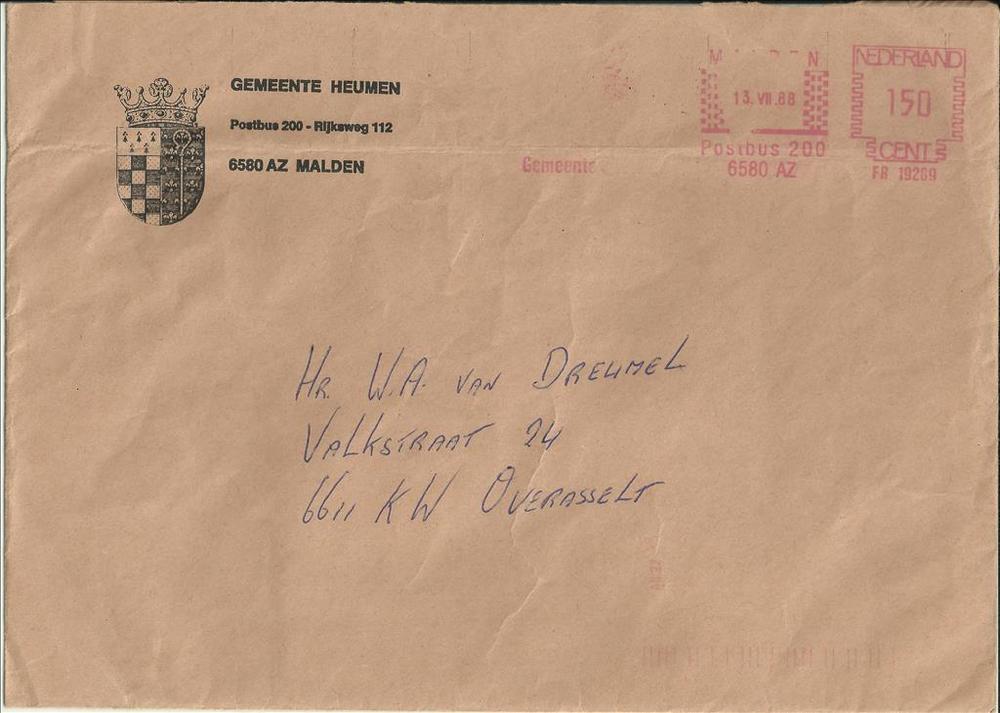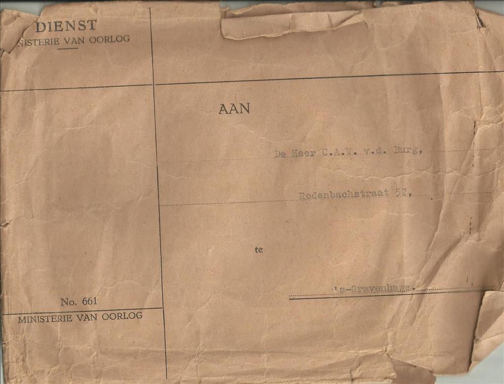 Enveloppe behorende bij de persoonlijke documenten v...