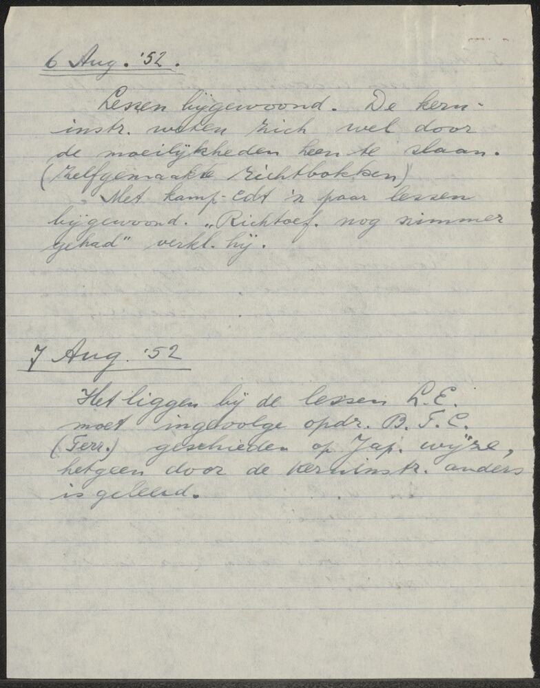 kort dagboek periode 31 juli - 7 augustus 1952